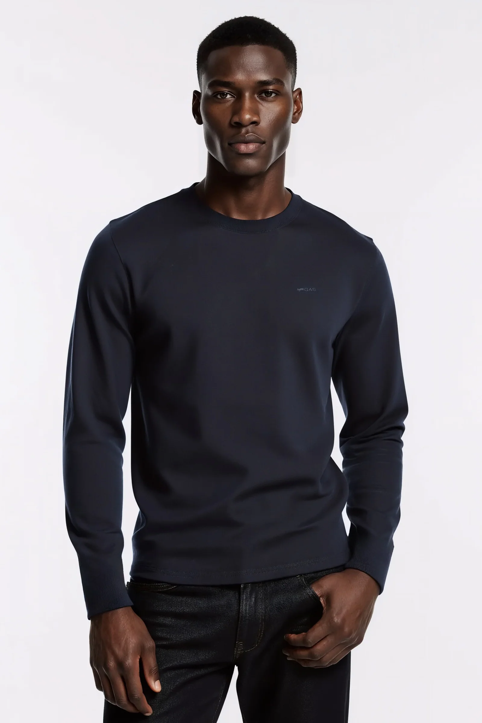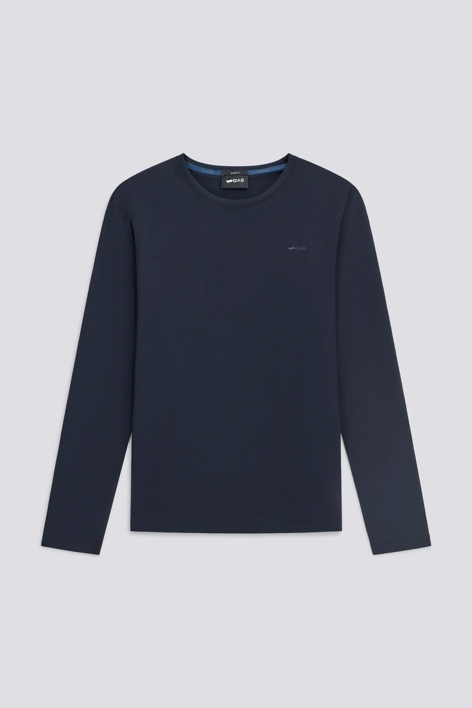 T-shirt a manica lunga slim fit in jersey stretch, valorizzata dalla stampa logo spessorata lucida tono su tono sul petto sinistro e dal parasudore interno logato, per un tocco distintivo e contemporaneo.Caratteristiche Principali: Slim Fit Jersey stretch Colore: blu Stampa logo spessorata lucida tono su tono Il modello indossa la taglia L/33