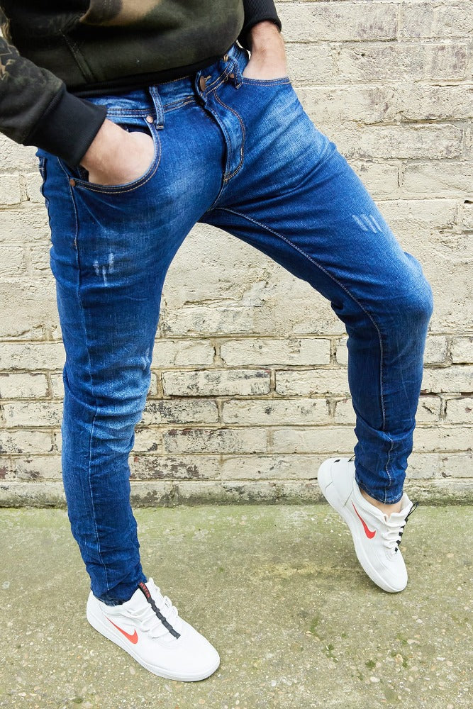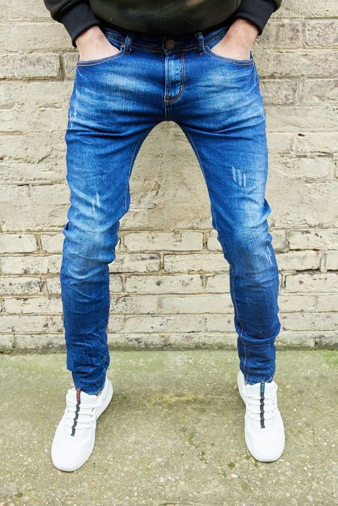 Jean bleu fashion homme avec griffures Modèle • Jean bleu • Deux poches sur l’avant• Matière confortable• Etiquette certifiant l’authenticité TAILLE ET COUPECoupe cintréeCe produit taille normalementPrenez votre taille habituelleTaille du mannequin principal : 1,84m Le modèle présenté est une taille 32 COMPOSITION ET ENTRETIENLavable en Machine à 40°