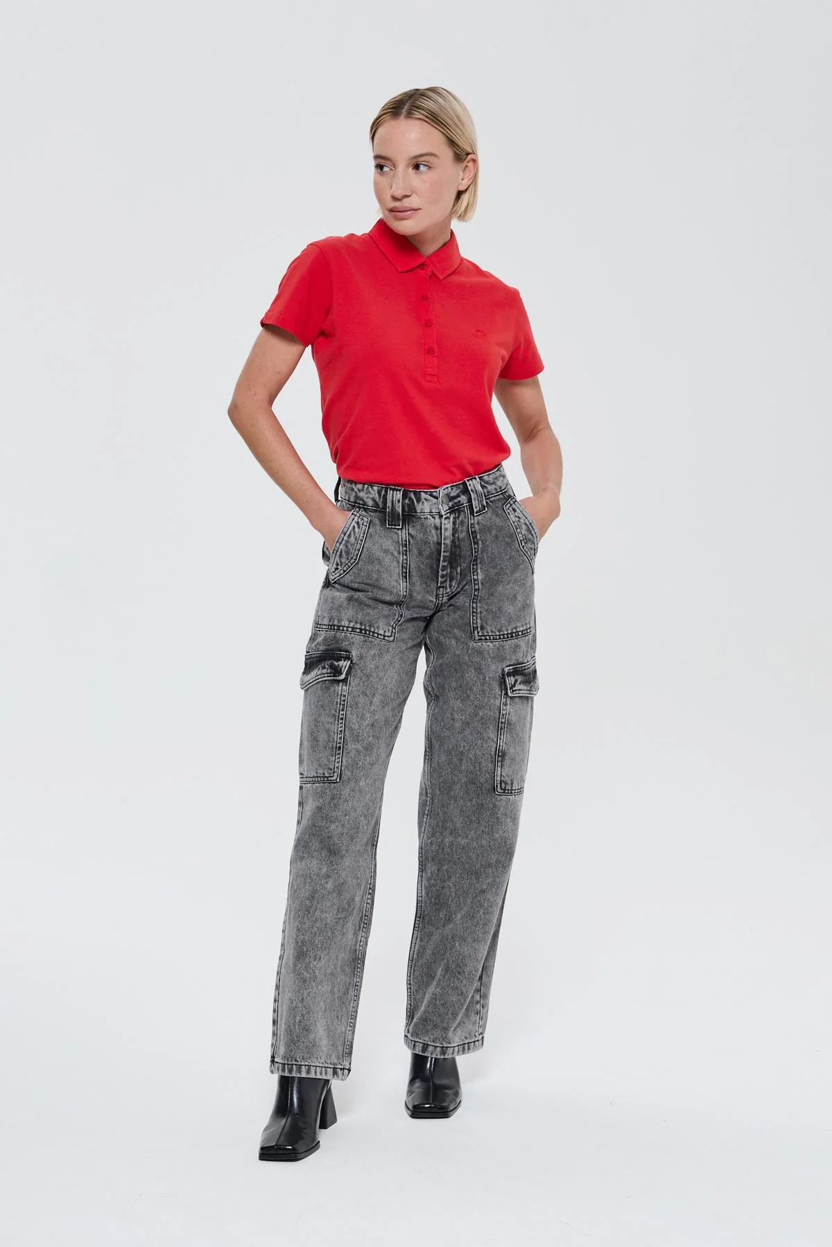 Jean cargo femme en denim 100% coton, pensé pour allier robustesse, confort et style utilitaire.