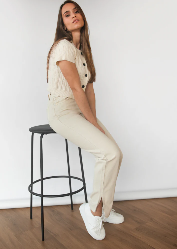 Jean Droit Beige Taille Haute Fendu Sur Les Côtés