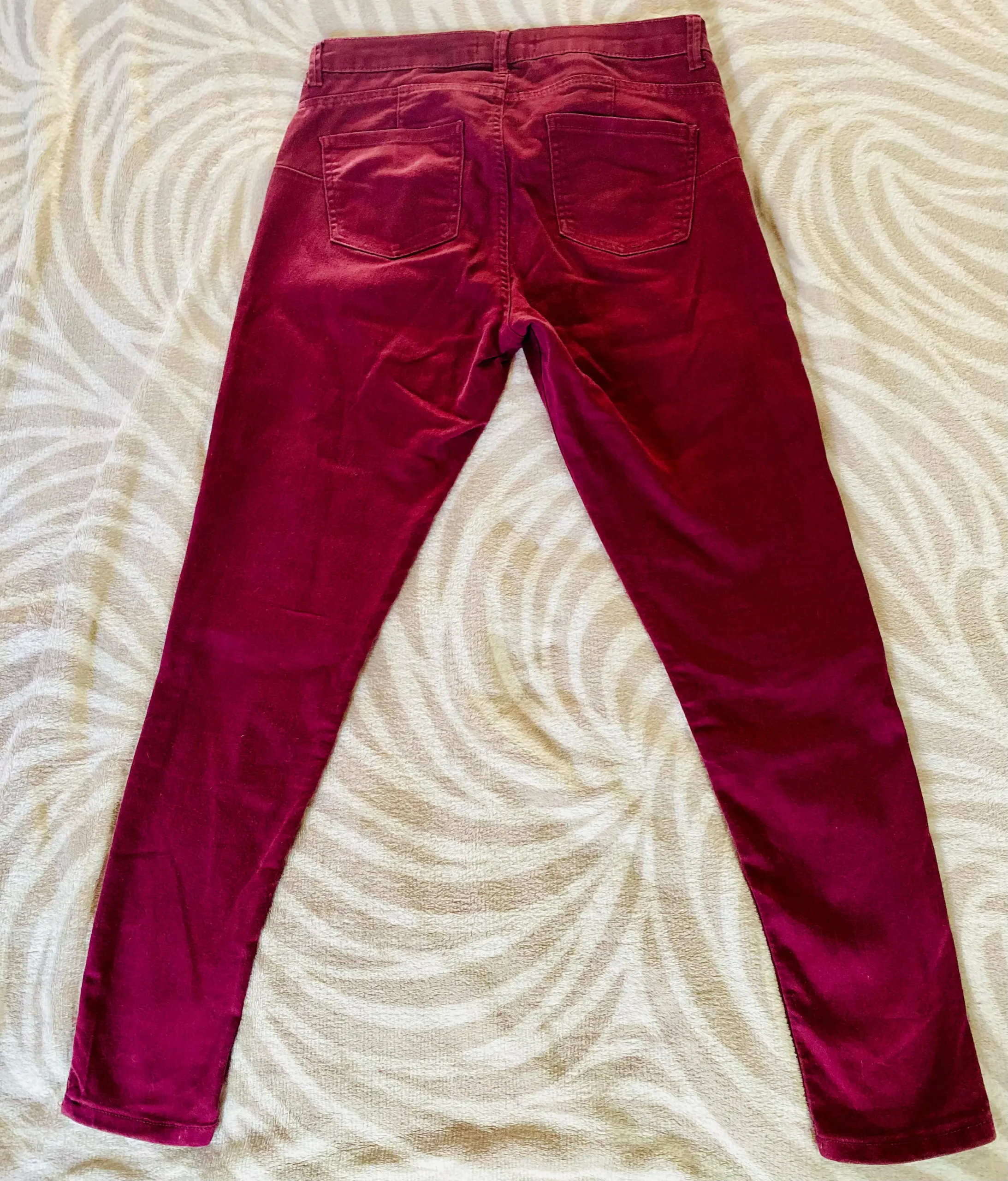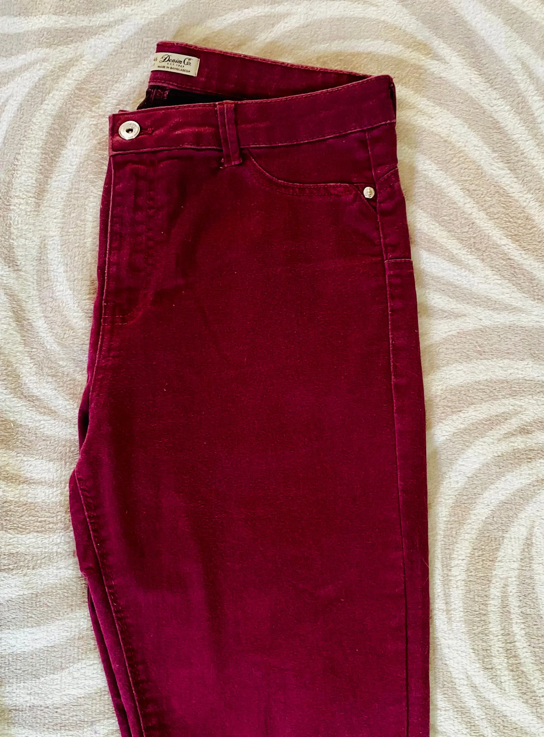 Ce jean bordeaux est idéal pour un look à la fois décontracté et sophistiqué, parfait pour toutes les occasions.