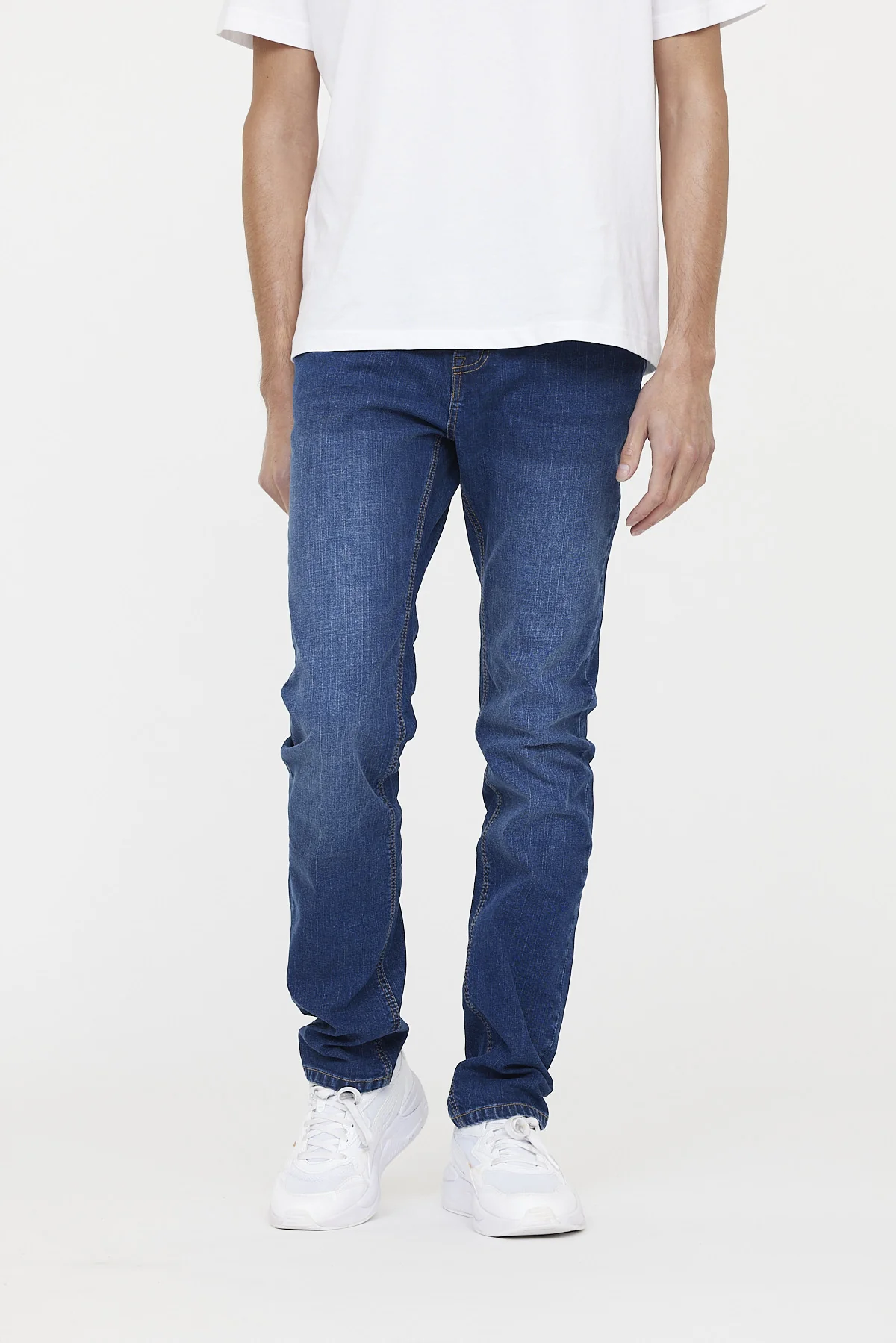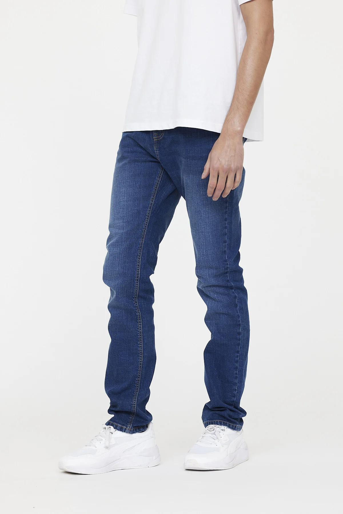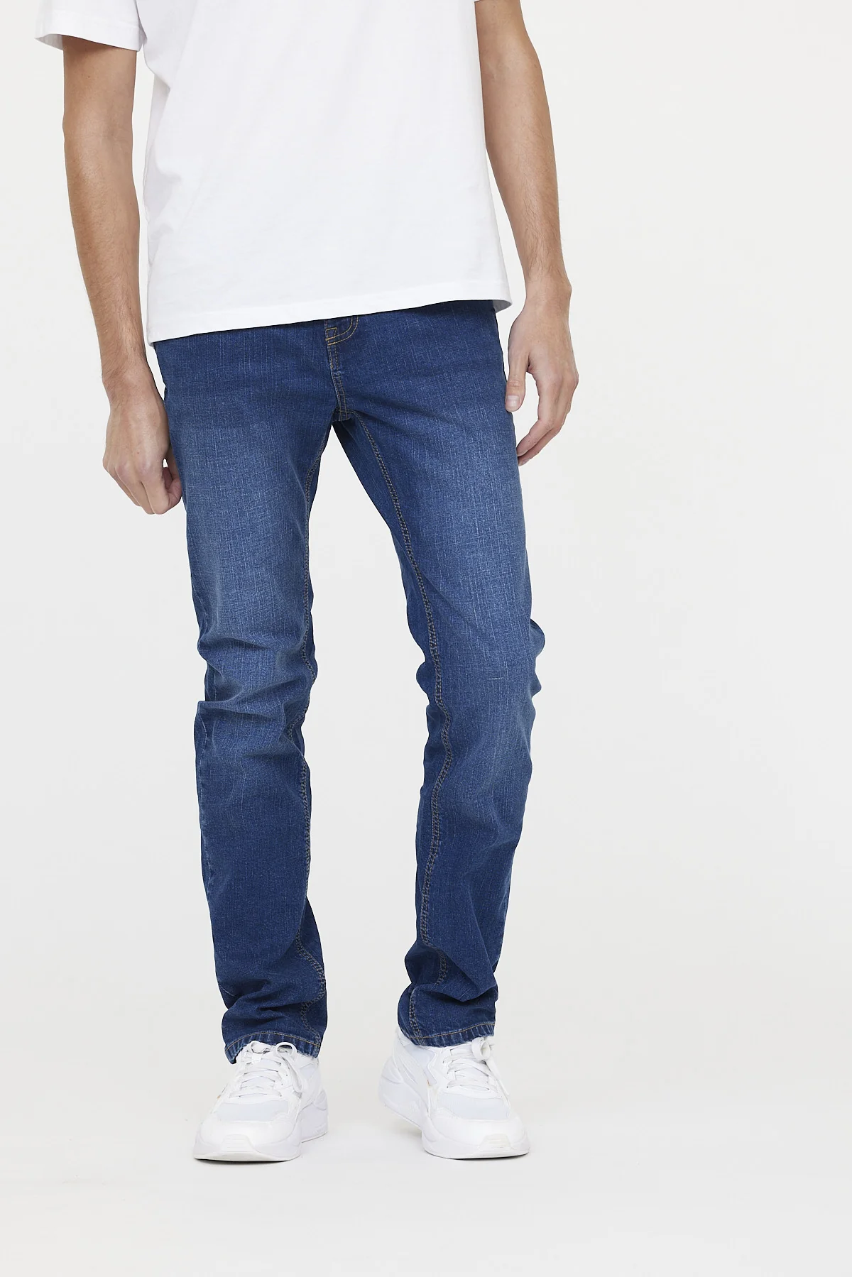 Jean taille medium, avec des jambes légèrement ajustées pour un confort optimal. Confectionné dans un tissu stretch, ce jean à coupe straight offre une grande liberté de mouvement.
