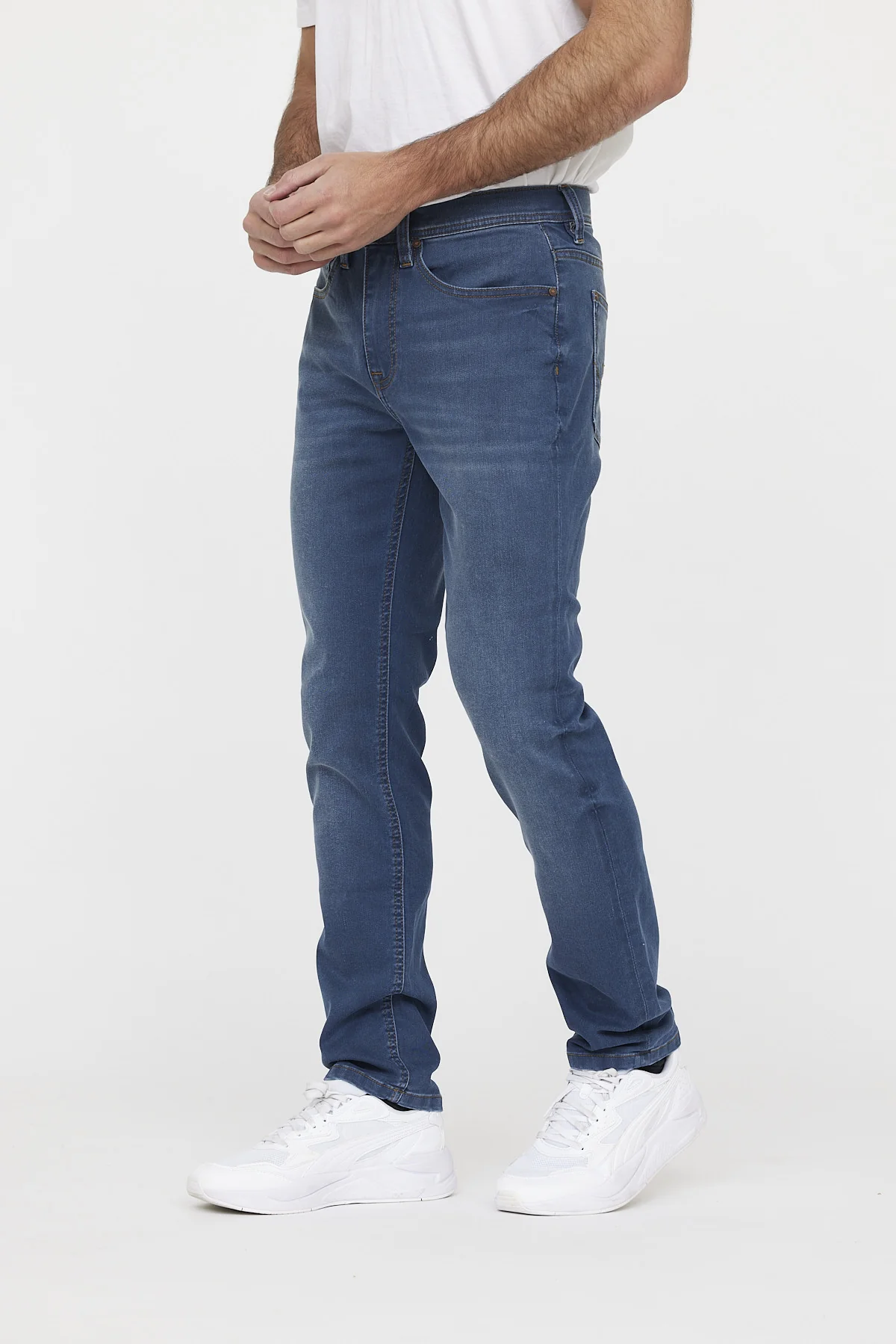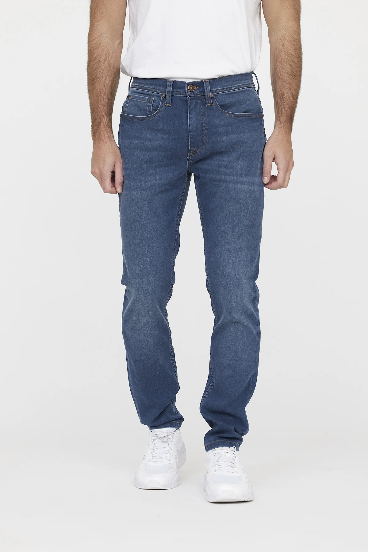Jean taille medium, avec des jambes légèrement ajustées pour un confort optimal. Confectionné dans un tissu stretch, ce jean à coupe straight offre une grande liberté de mouvement.