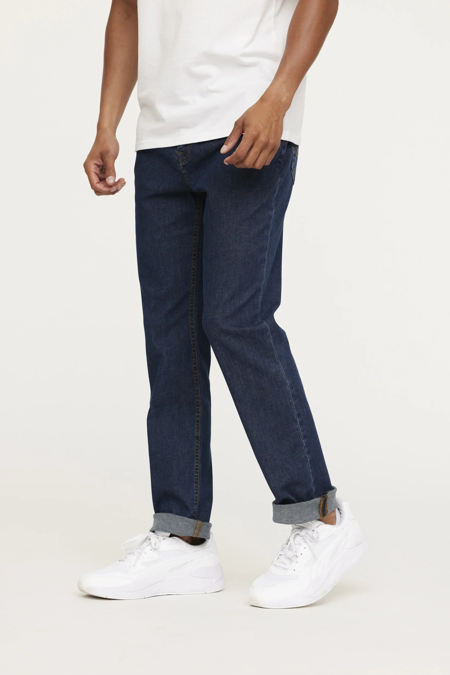 Jeans taille haute, jambe droite Le mannequin mesure 1m85 et porte la taille 31