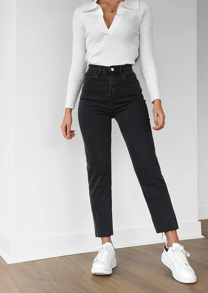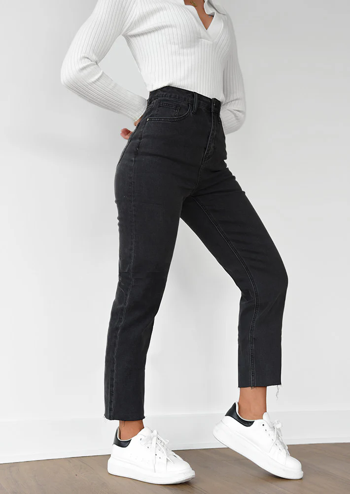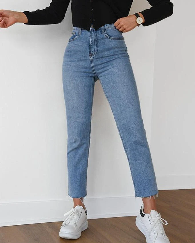 ✔️ Pantalon – Coupe Mom Fit, élastiqué, taille haute
