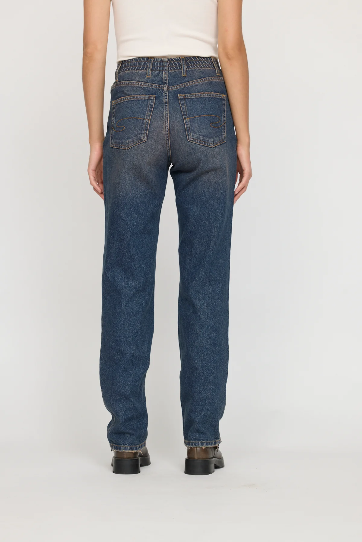 Jean coupe straight en 100% coton. La taille haute accentue votre silhouette en mettant en valeur votre taille et en allongeant vos jambes pour un effet élégant et raffiné. Longueur 32