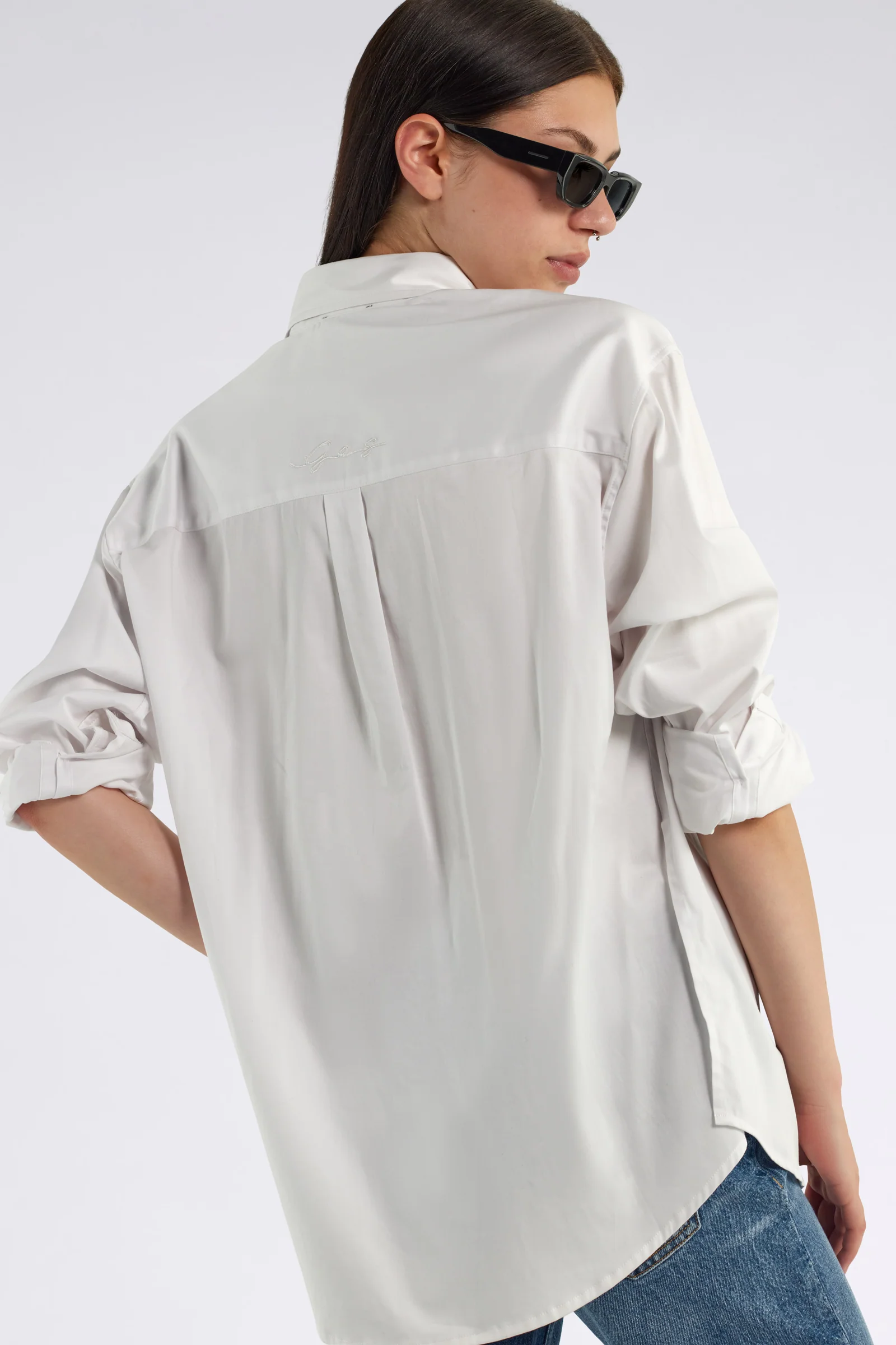 Realizzata in popeline stretch, questa camicia comfort fit si distingue per il ricamo logo tono su tono sul carré posteriore – ottenuto con tecnica Comelly – e per la placca in metallo con logo sulla tasca frontale. Un capo versatile, perfetto per ogni occasione.