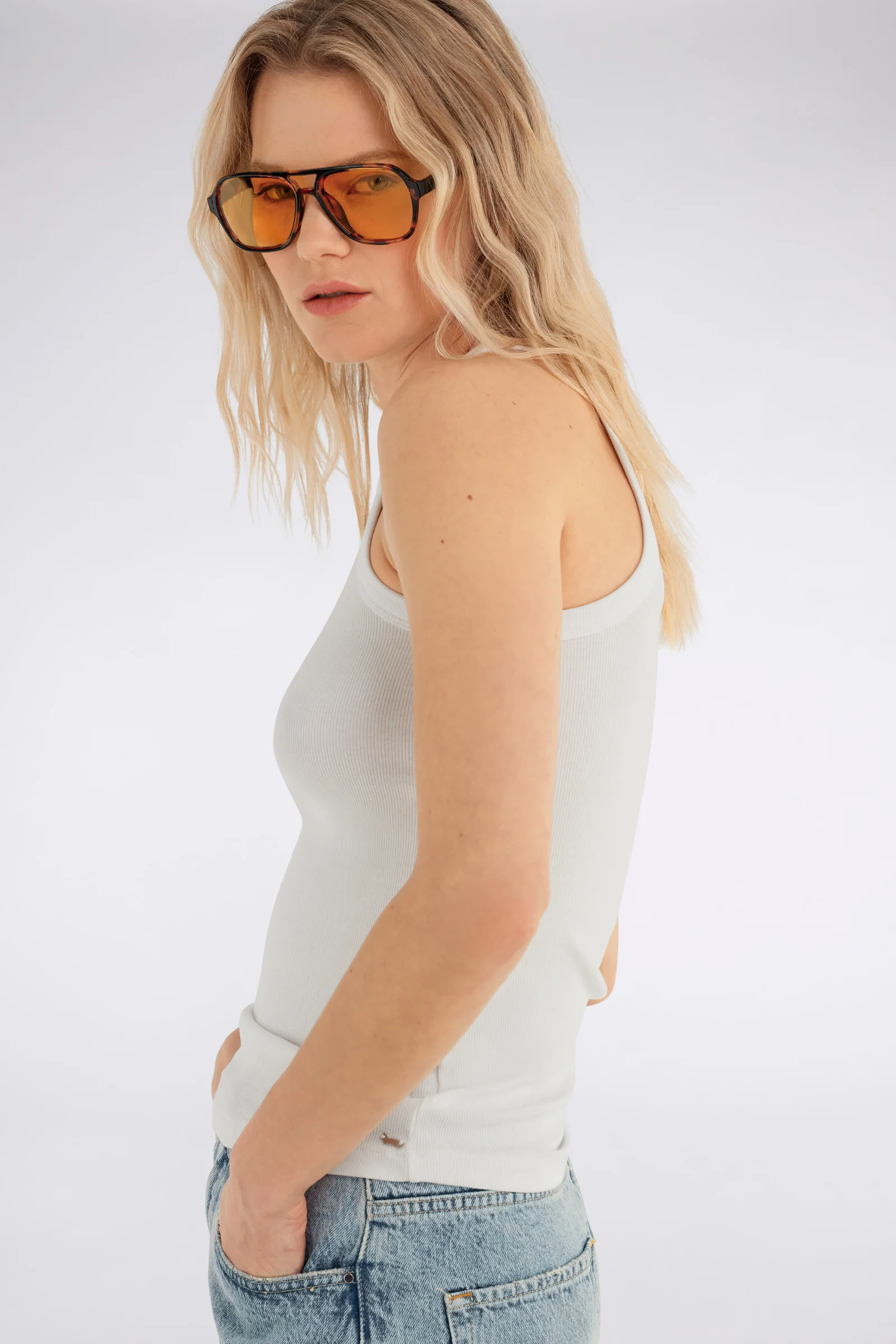 Canotta slim fit in jersey di cotone stretch, arricchita da una stampa lucida ton sur ton sul retro e placchetta logo applicata sul fondo davanti. Un essential dal twist contemporaneo perfetto come base dei tuoi look.
