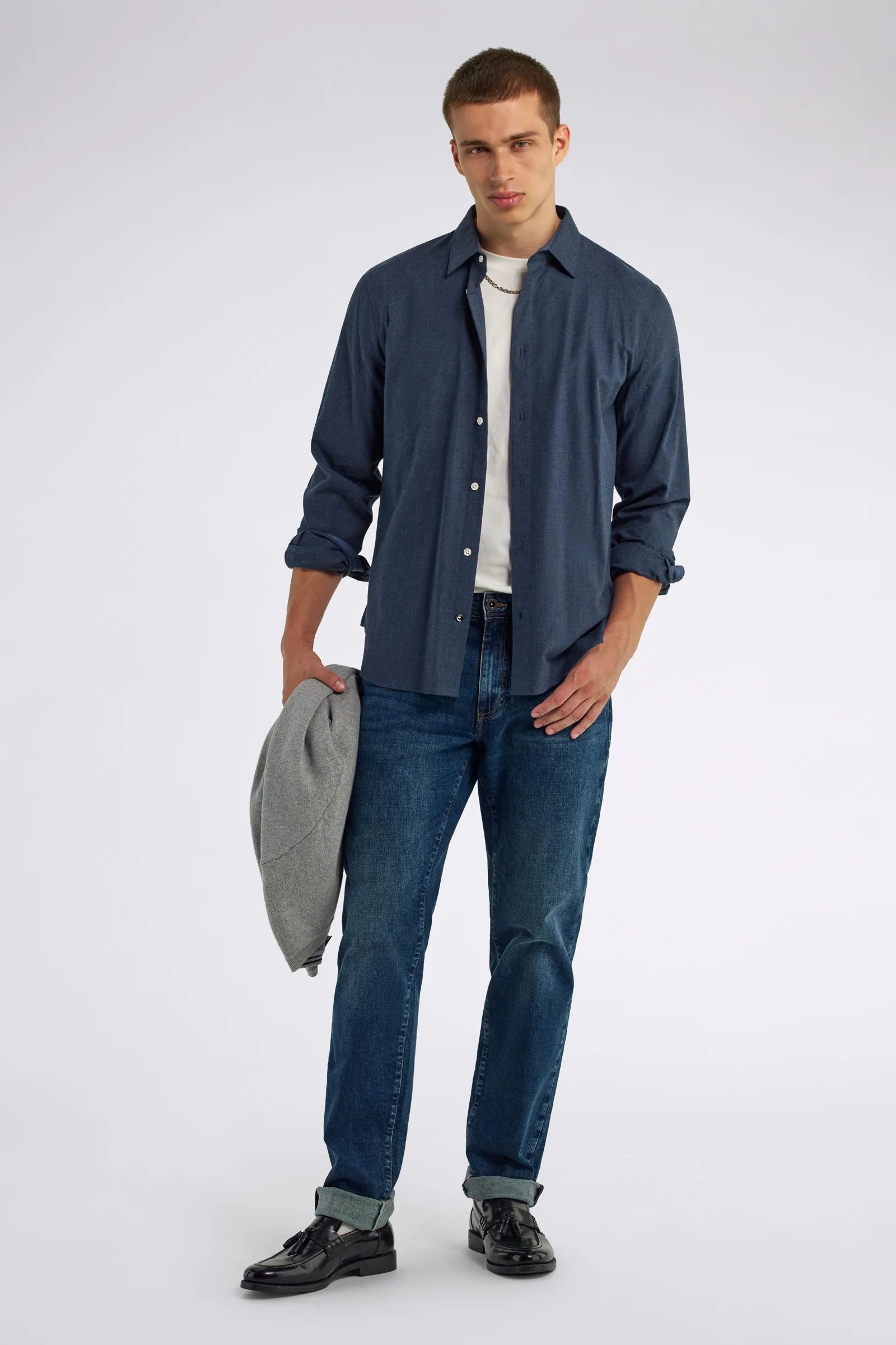 Camicia uomo in flanella di cotone dal fit regolare, ideale per le giornate più fredde grazie alla sua morbidezza e allo stile comfy chic. Perfetta per look layered o da portare aperta sopra capi basic per un’attitude casual ma d’impatto.