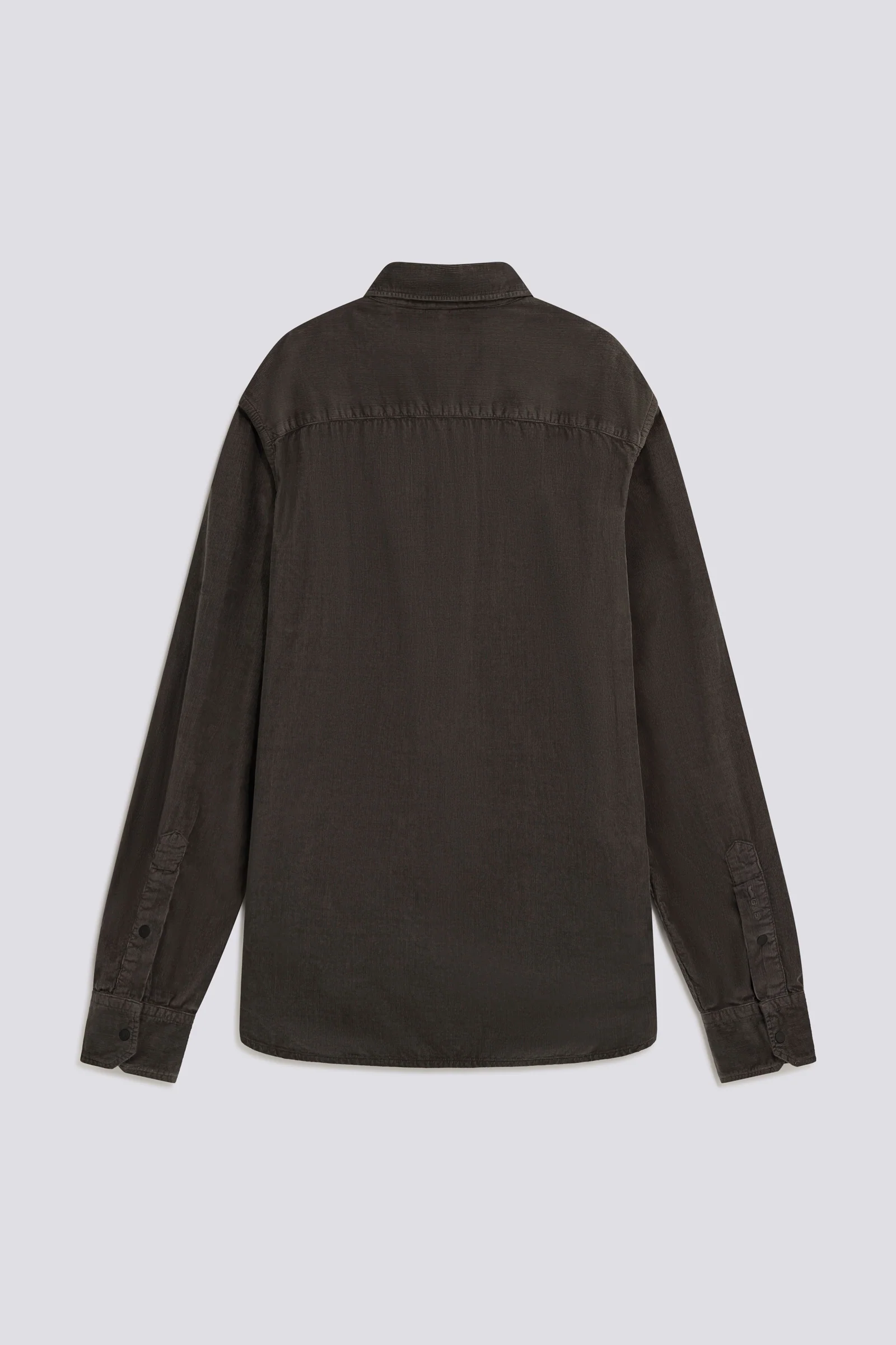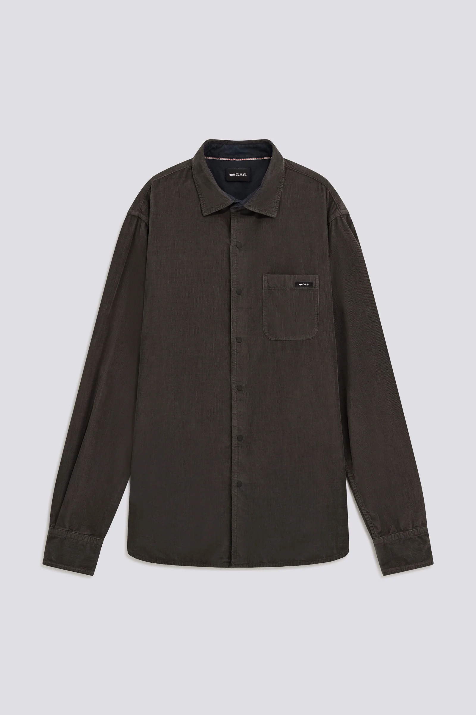 Questa camicia a manica lunga è realizzata in velluto di cotone mille righe, un tessuto morbido ma strutturato perfetto per la stagione. Il fit regular e il colore asfalto la rendono versatile e facile da abbinare, mentre la tasca frontale aggiunge un tocco utility. Ideale da indossare con denim o pantaloni chino per un look casual ma ricercato.