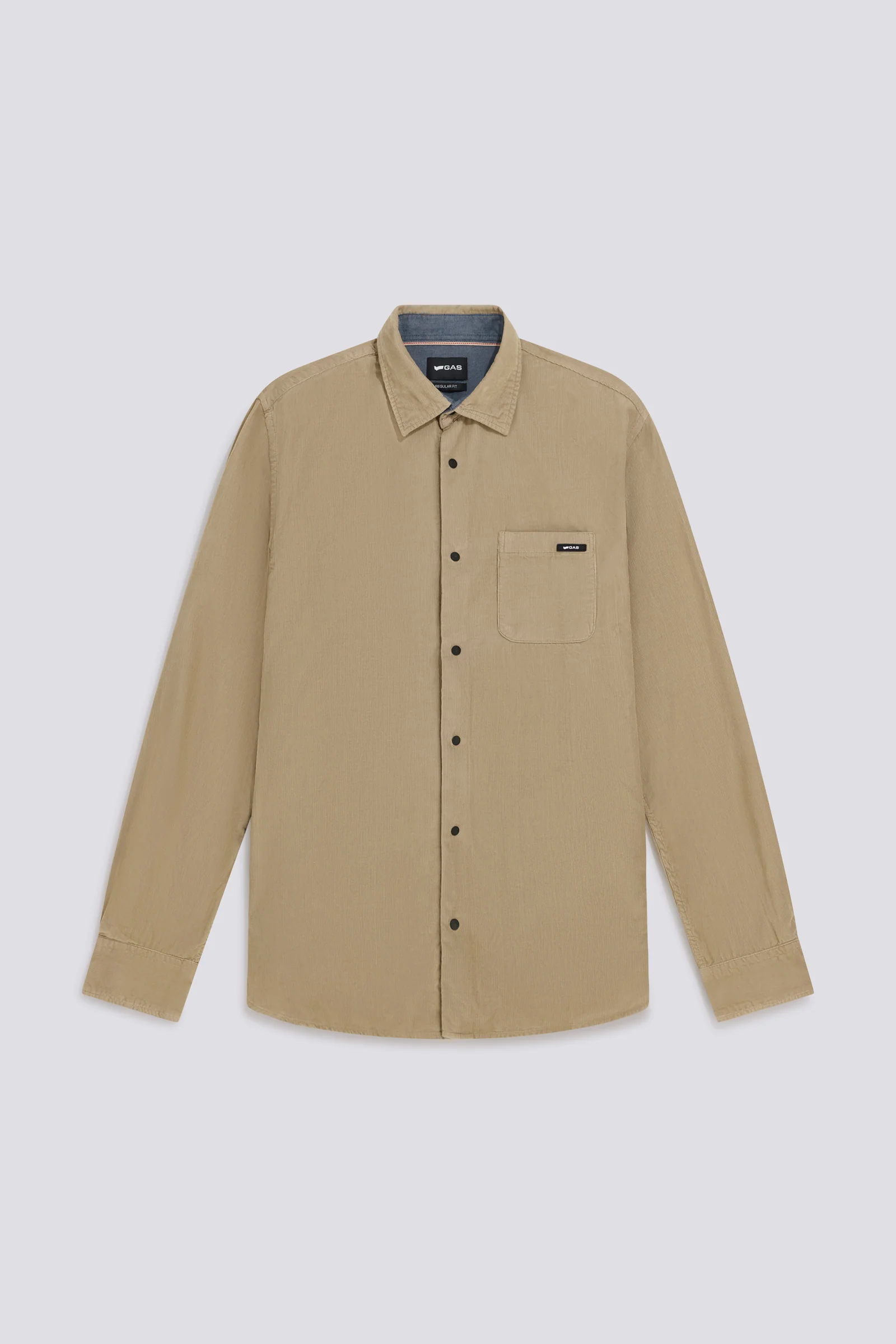 Questa camicia a manica lunga è realizzata in velluto di cotone mille righe, un tessuto morbido ma strutturato perfetto per la stagione. Il fit regular e il colore asfalto la rendono versatile e facile da abbinare, mentre la tasca frontale aggiunge un tocco utility. Ideale da indossare con denim o pantaloni chino per un look casual ma ricercato.