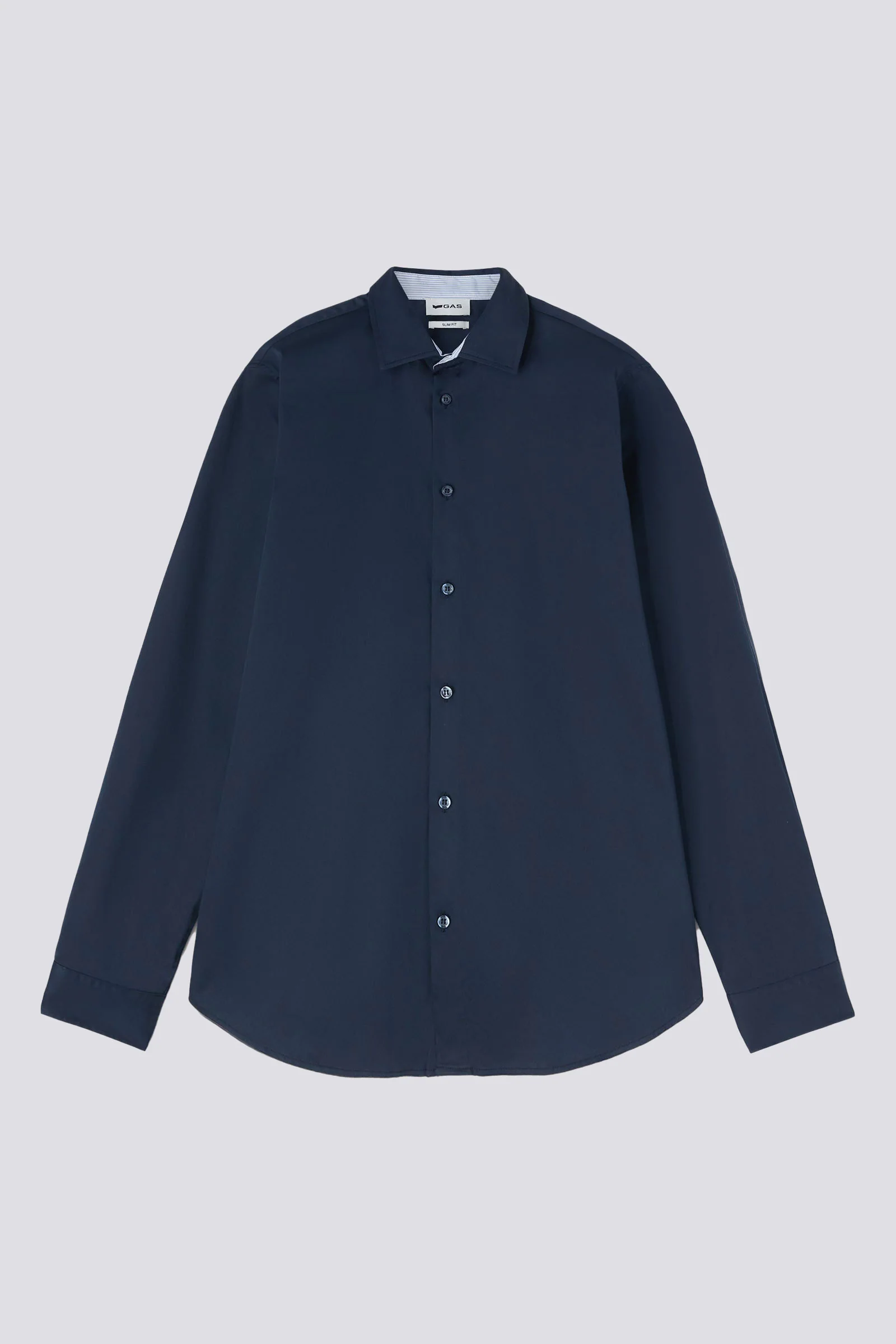 Aspetto pulito e attenzione ai dettagli per uno dei capi più versatili del guardaroba. La camicia da uomo in popeline stretch è caratterizzata da un taglio minimal e particolari ricercati, come il piping interno sul collo e sui polsi, che aggiungono un tocco di stile anche ai look più informali.