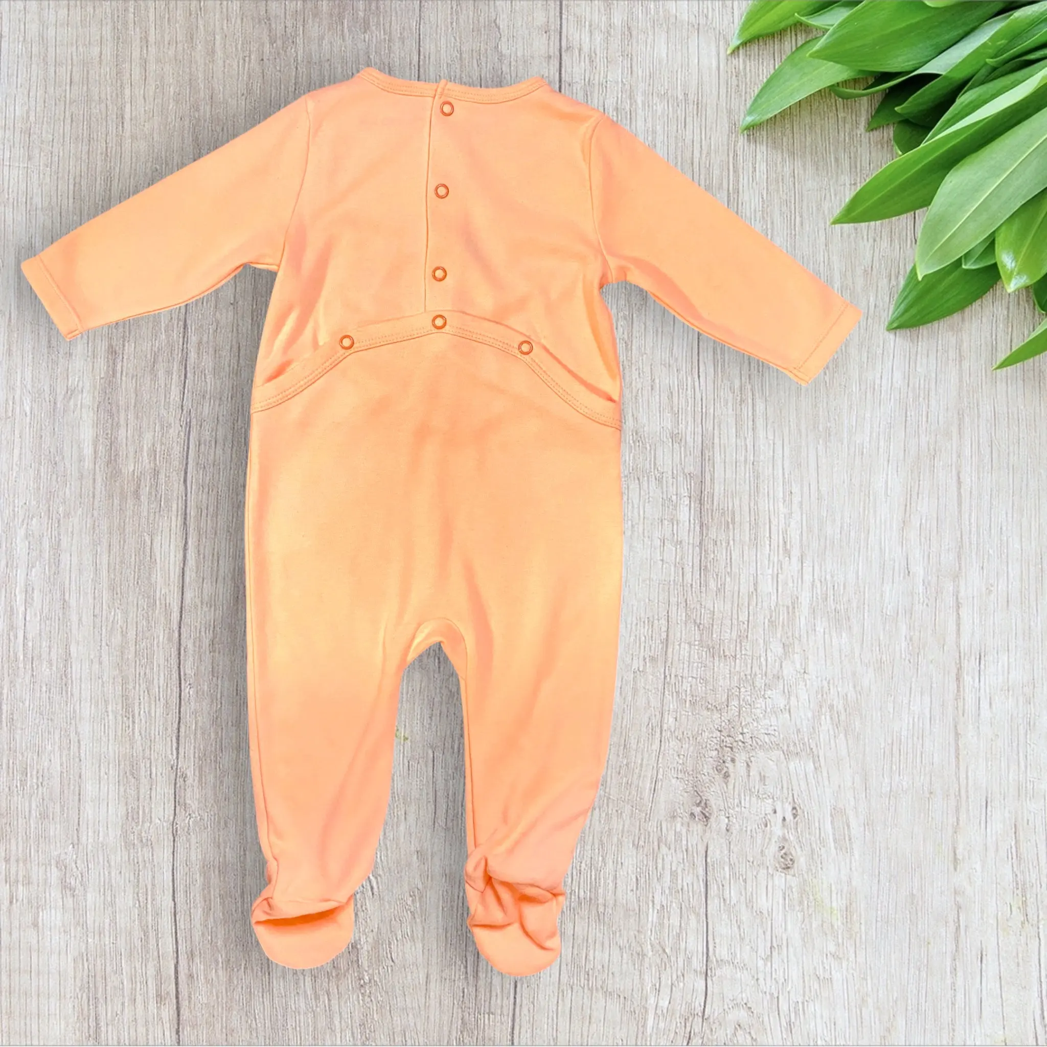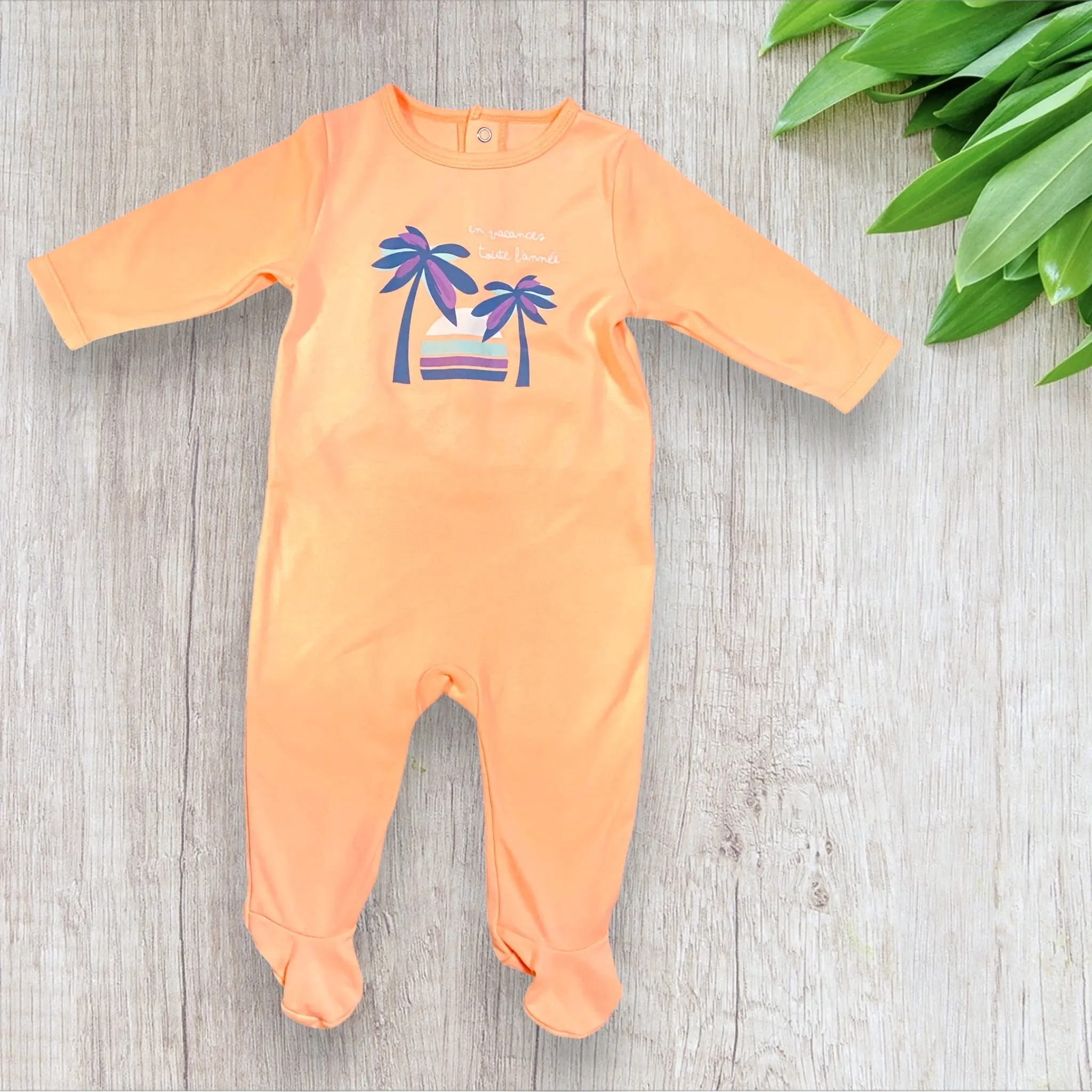 1 pyjama orange pêche avec motif palmier violet/bleu