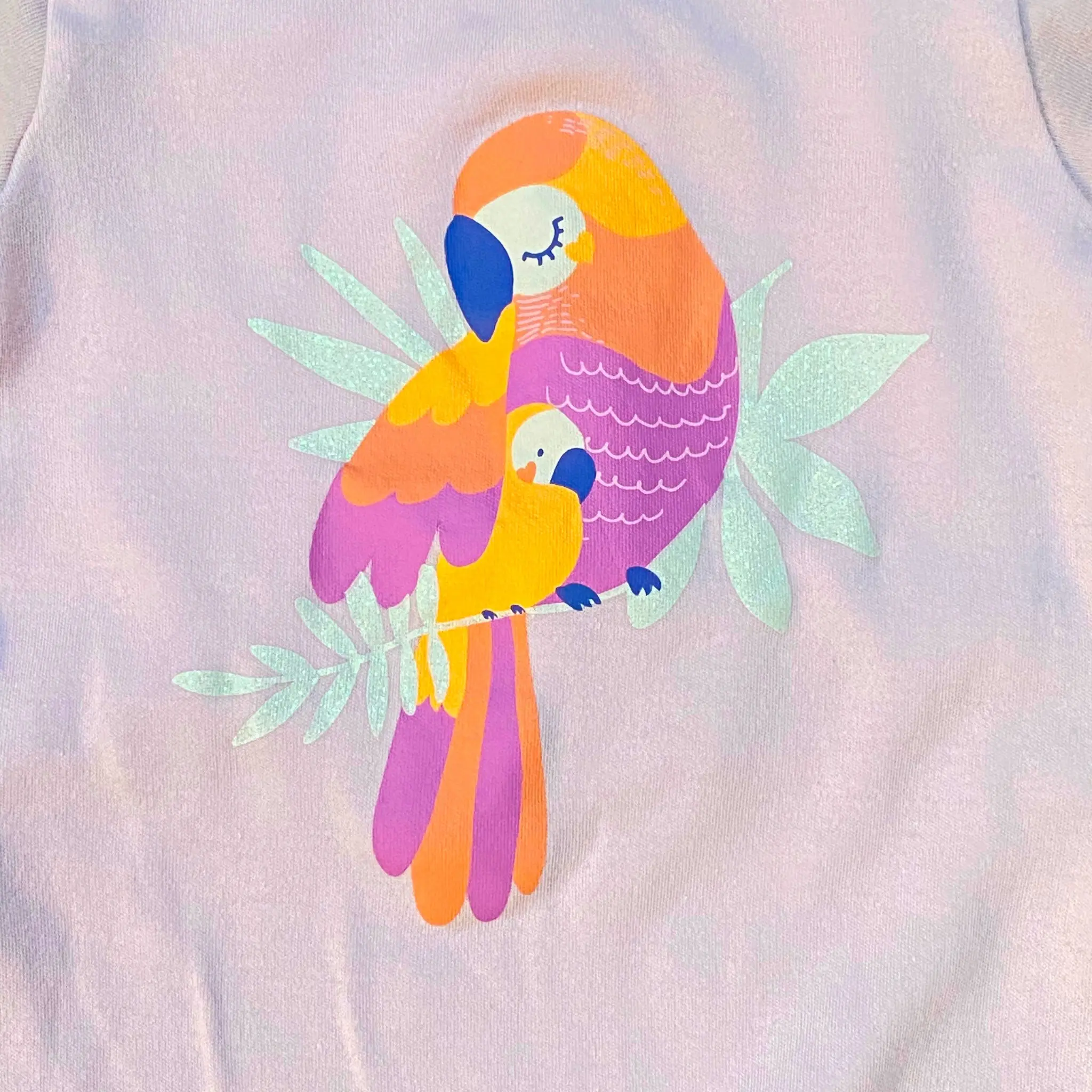 1 pyjama rose pâle avec motif perroquet coloré