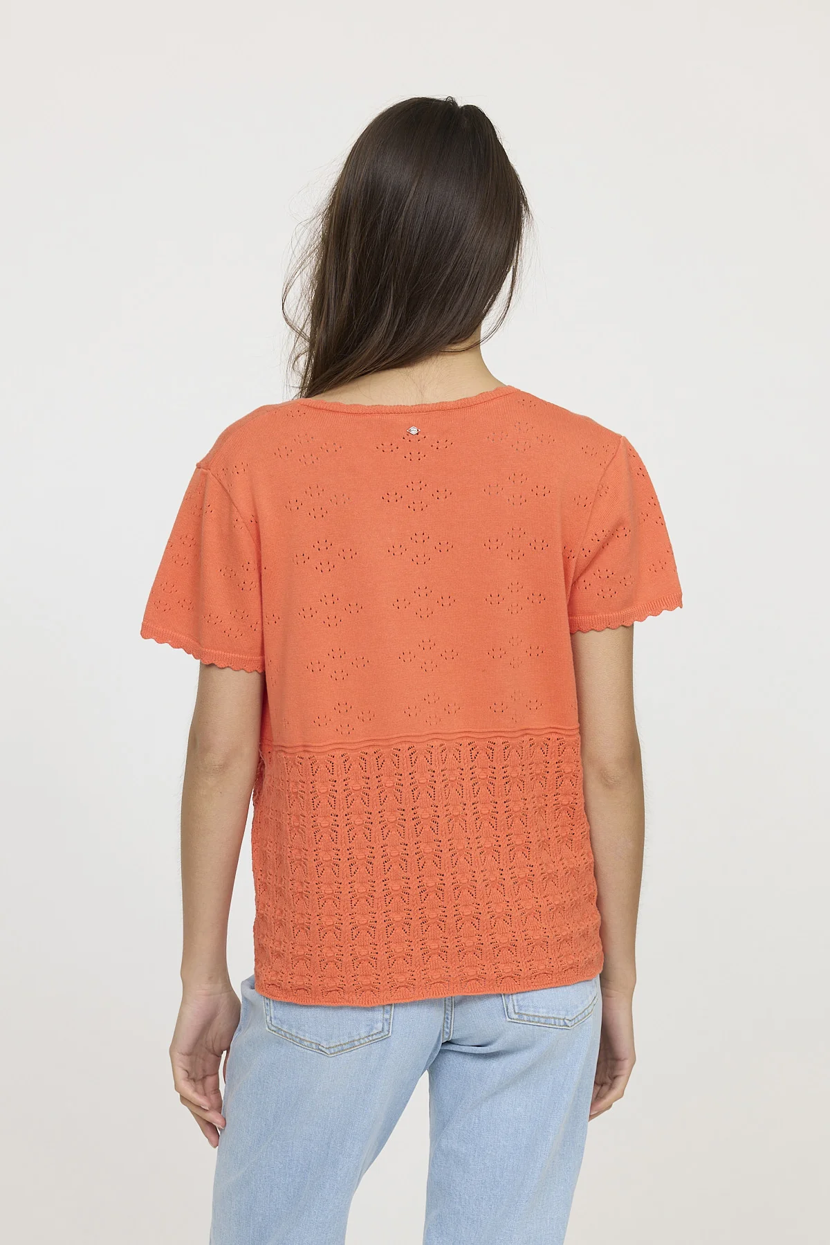 Cardigan femme en maille ajourée allie confort et style dans une pièce à la fois chic et décontractée. Le mannequin mesure 1m75 et porte la taille S