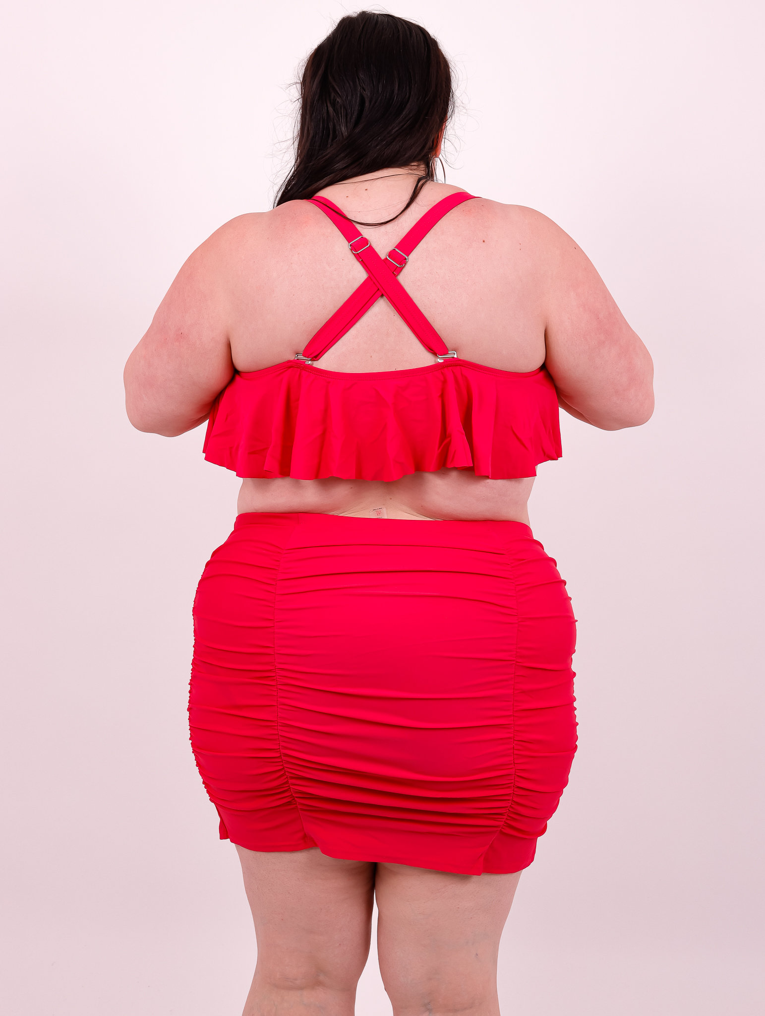 Maillot de bain deux pièces grande taille rose Haut brassière avec volants Bas jupe avec culotte intégrée