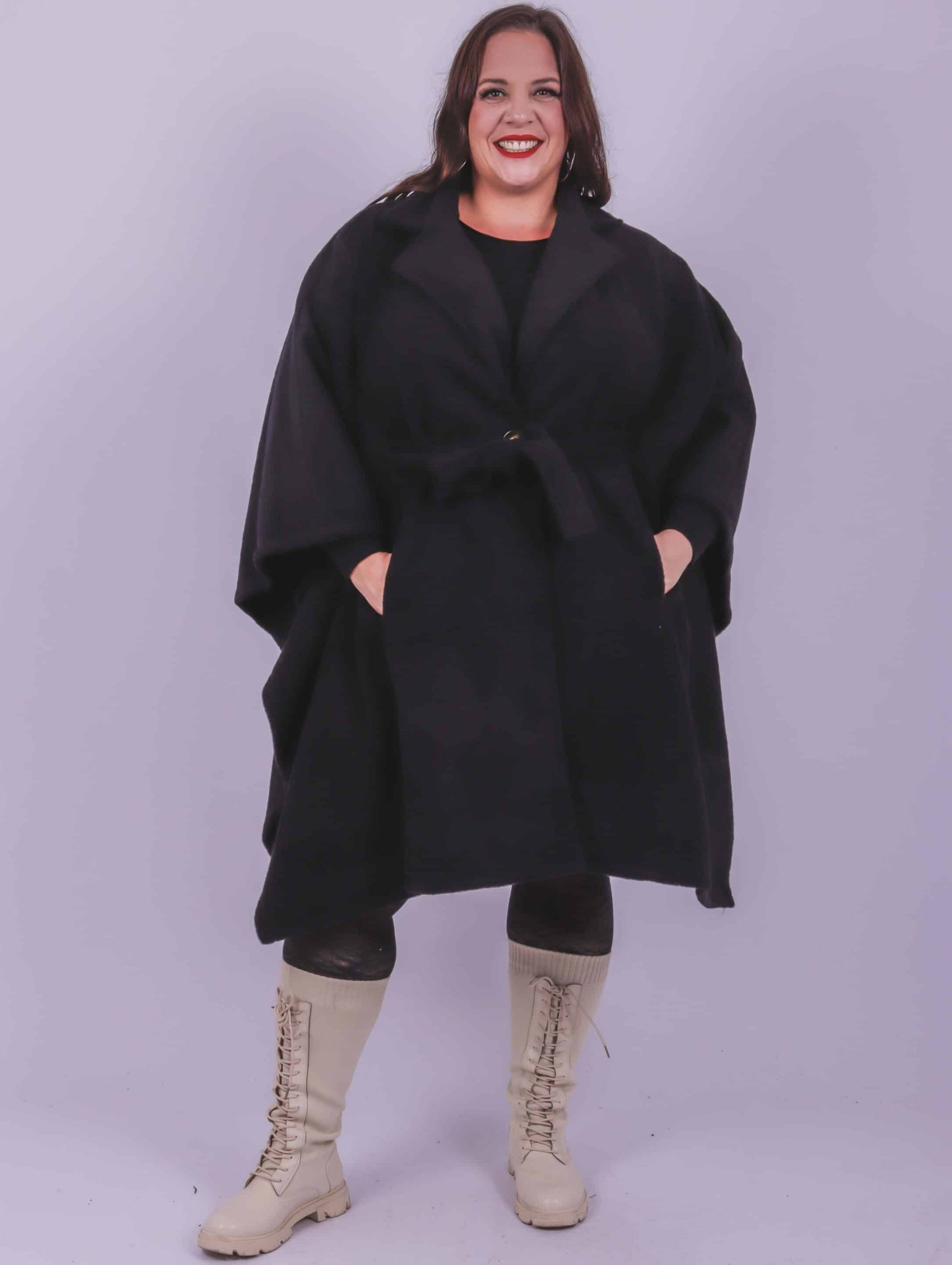 Manteau cape façon laine Taille adaptable du 50 au 58 grâce à la ceinture Longueur 101cm Largeur ceinture 196cm