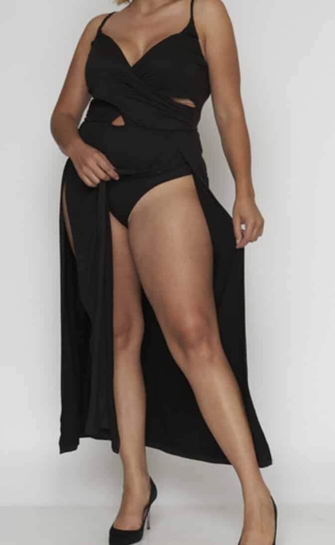 Maxi dress fendue les jambes. Décolleté bandes croisées.