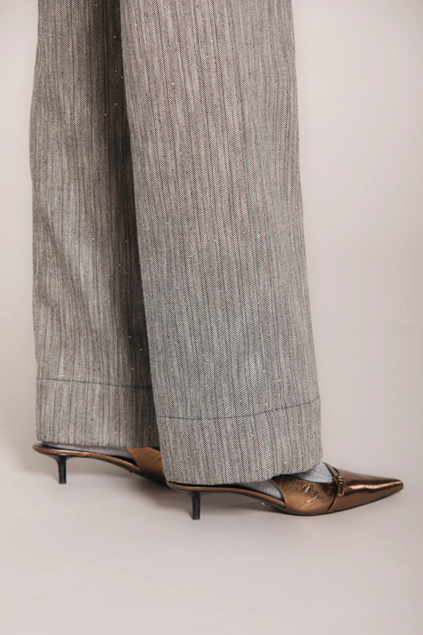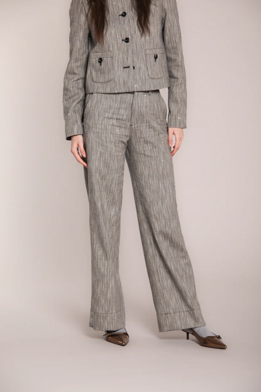 New York Studio pantalon chino femme en maille côtelée à sequins wide leg