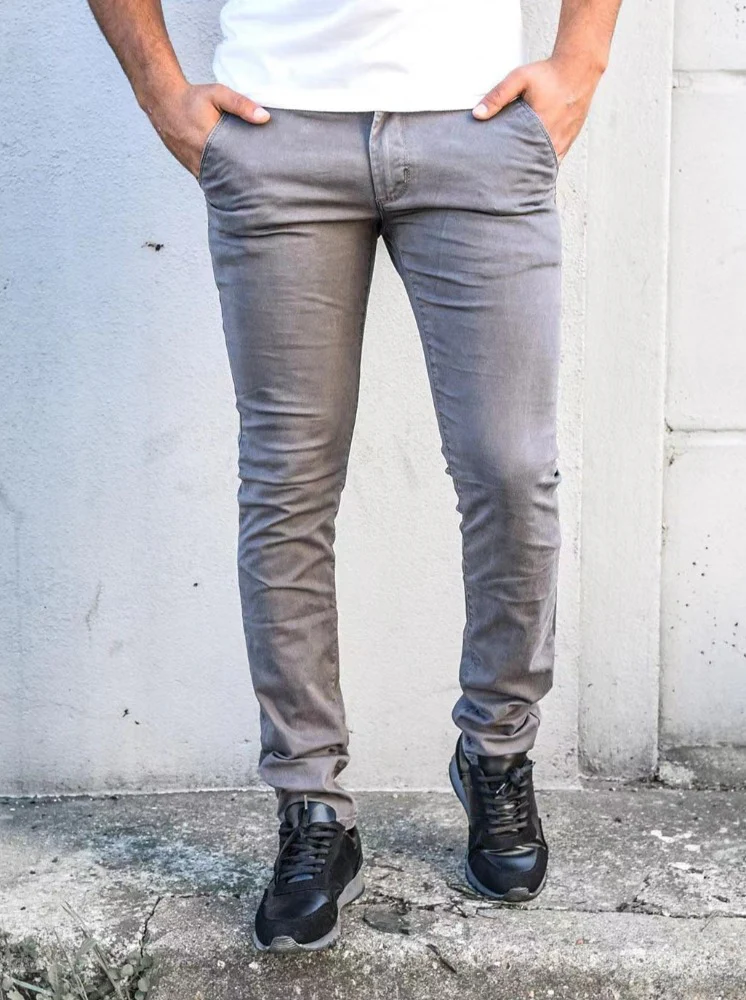 Pantalon chino gris homme coupe slim