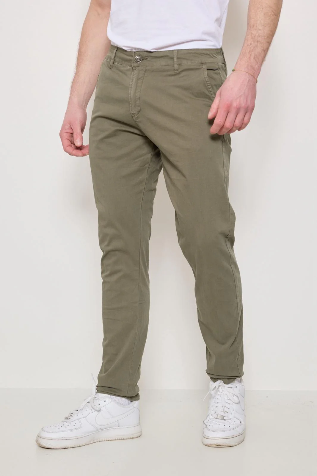 Nouvelle collection ETE Modèle G6582 Pantalon confortable Deux poches sur les cotés Fermeture par zip et bouton classique Etiquette certifiant l’authenticité Taille et coupe Coupe classique Taille slim Mannequin : 1m76 et 65kg porte une taille 32 Composition et entretien 97% Coton 3% Elastane Lavable en machine à 30°