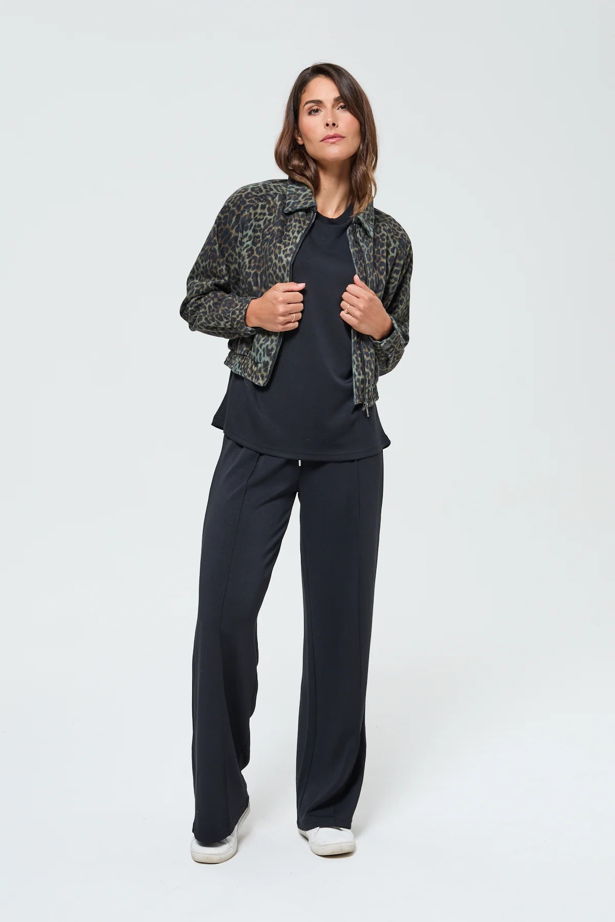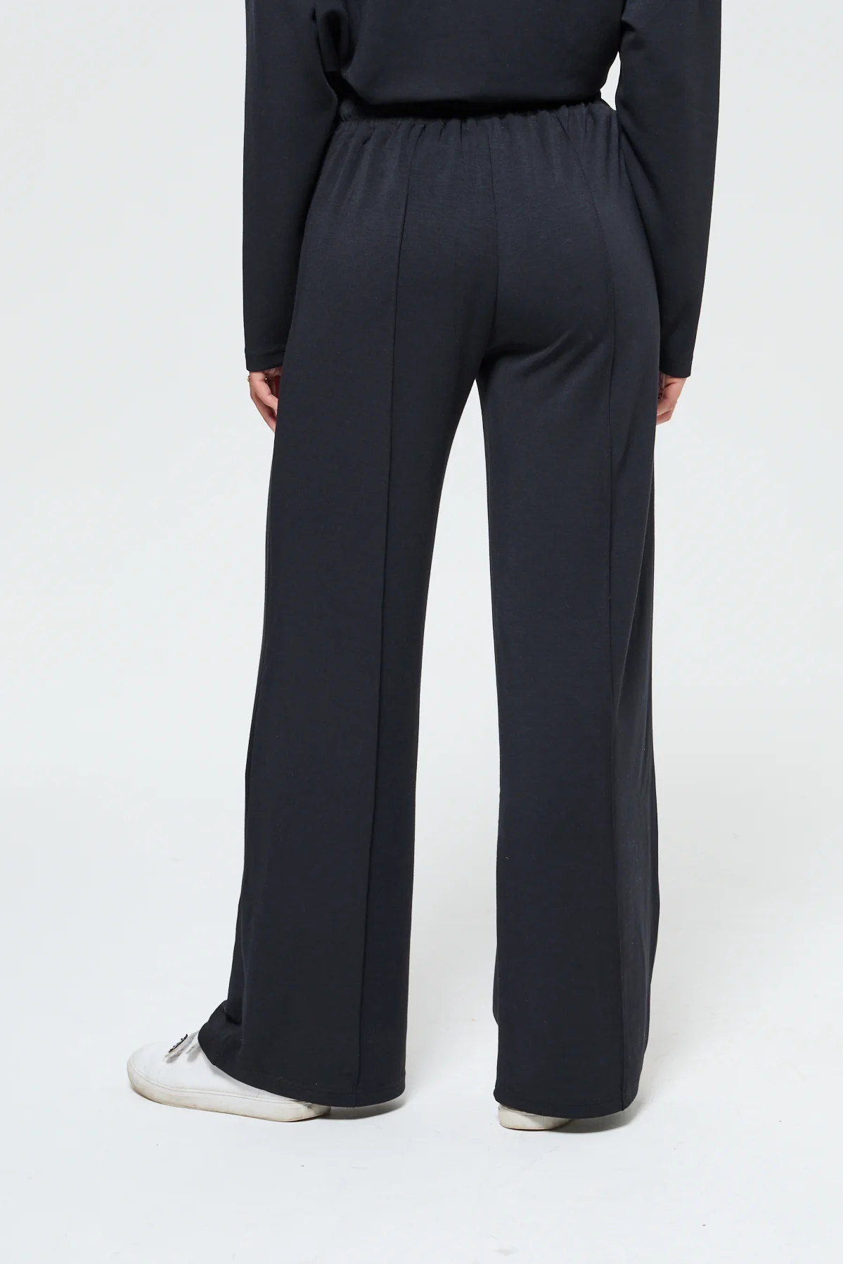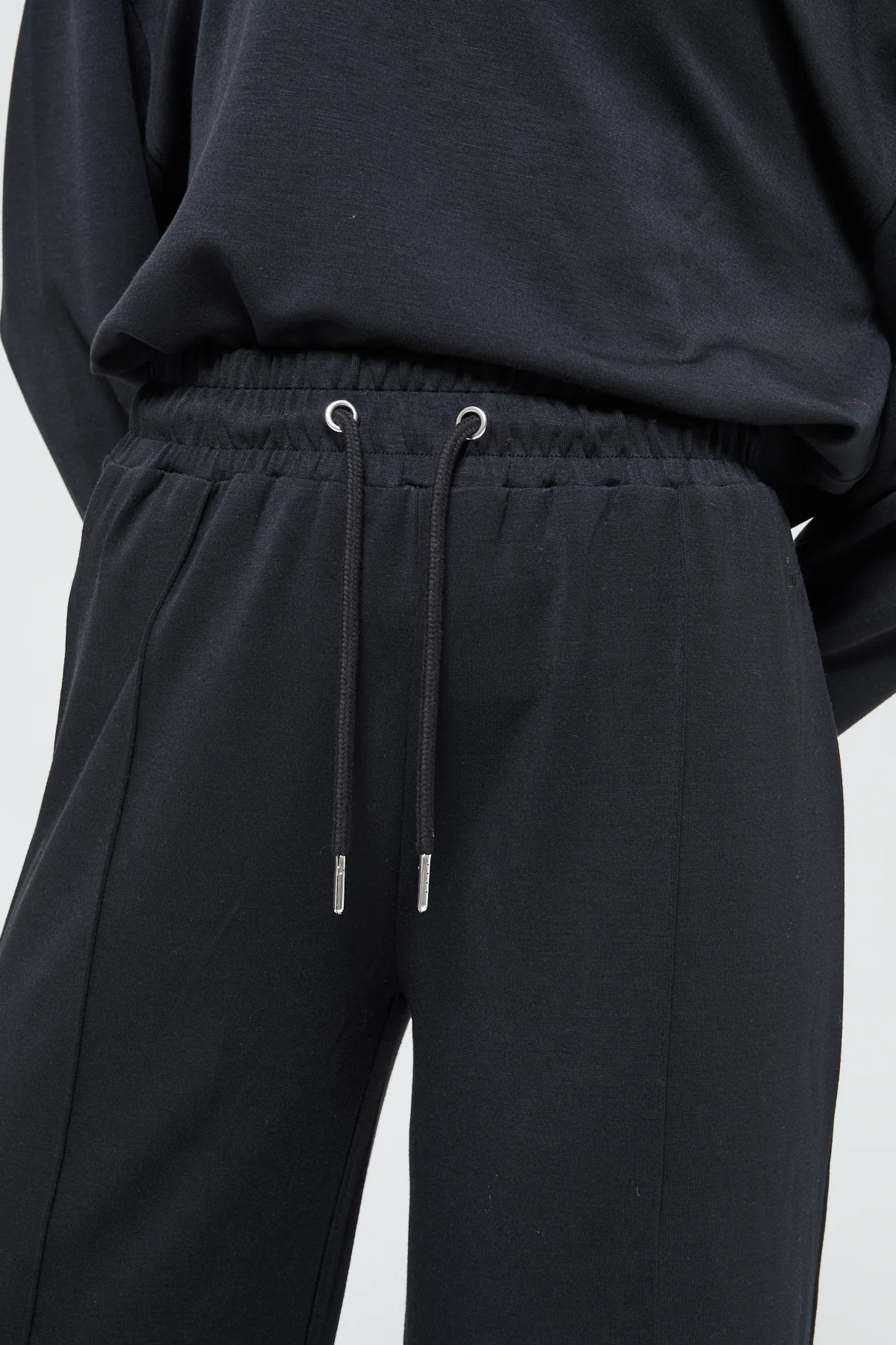 Pantalon coupe carrotte en polyester, elasthanne et modal. Ample au niveau des hanches et des cuisses, puis se rétrécissant vers les chevilles, ce pantalon offre une silhouette unique et décontractée tout en restant élégante.