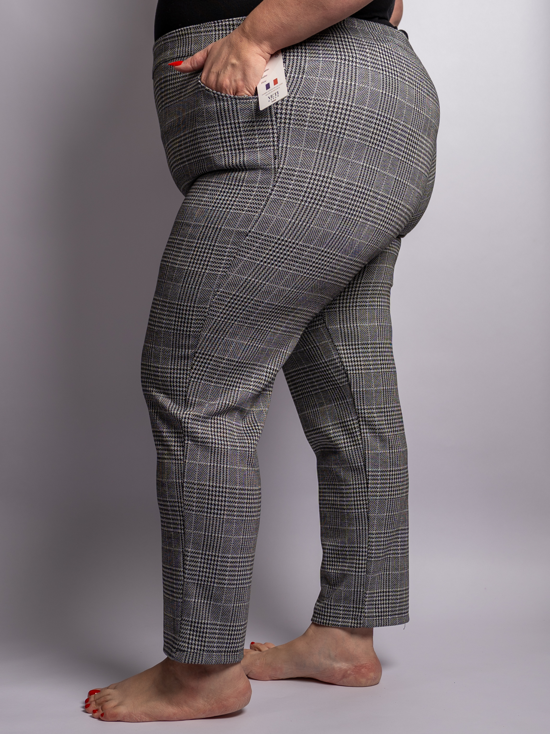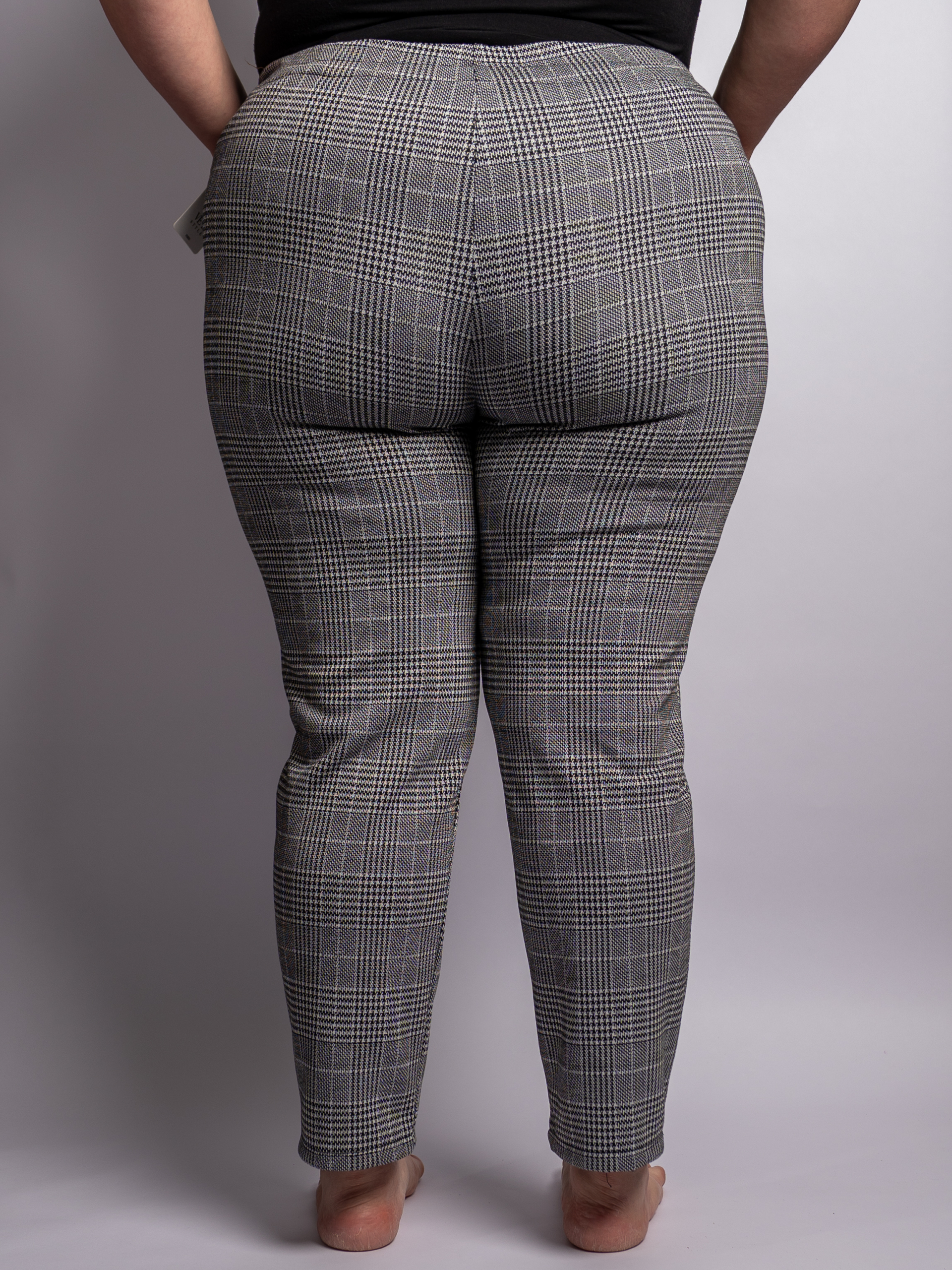 Pantalon stretch à carreaux pied de poule grande taille – Fashion Curvy Shop
