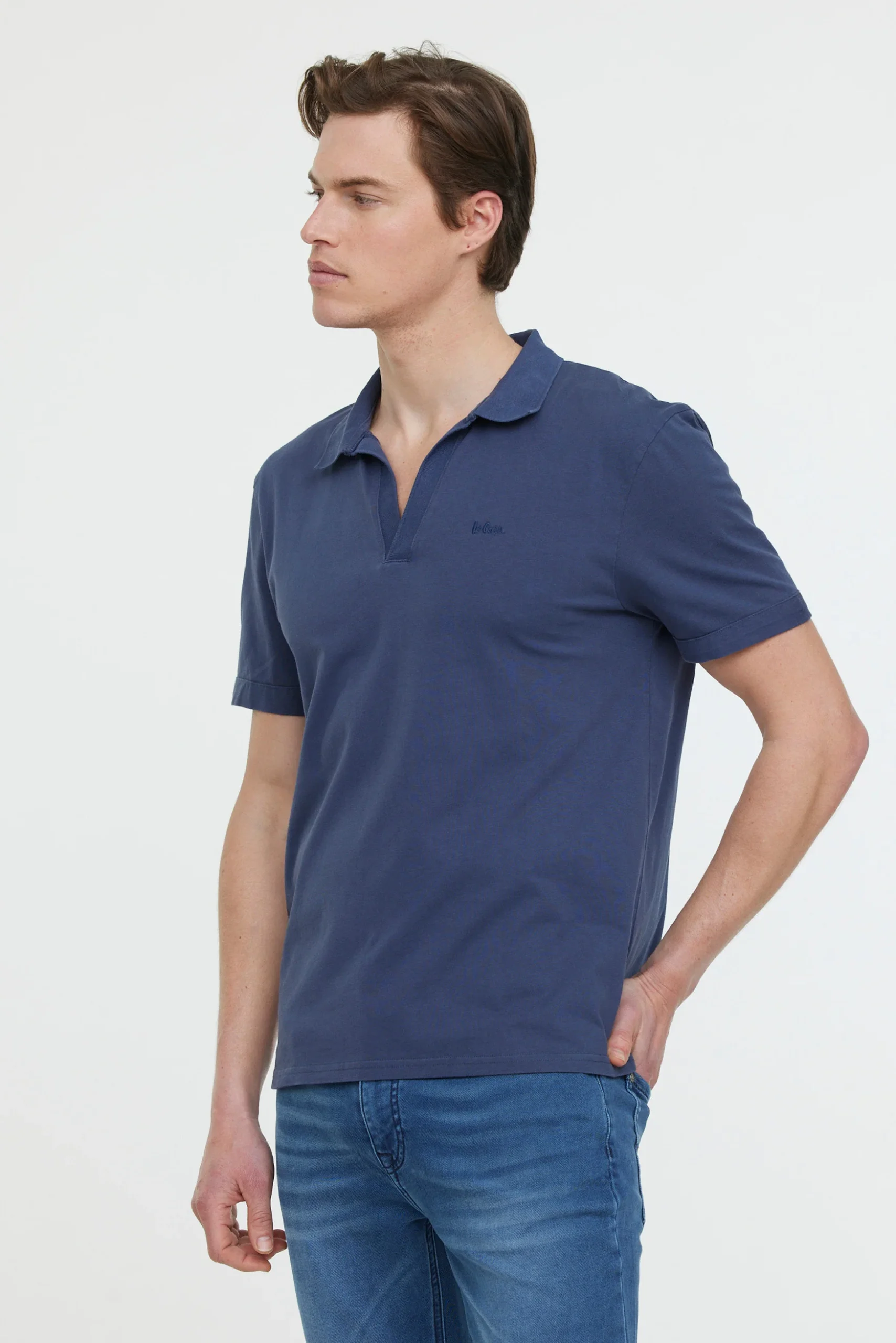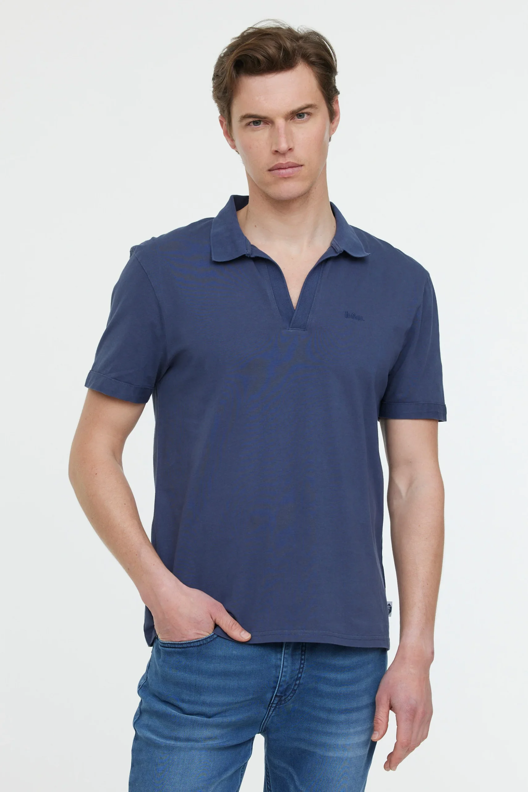 Polo sans boutonnage manches courtes en jersey et broderie poitrine Le mannequin mesure 1.85 cm et porte la taille M