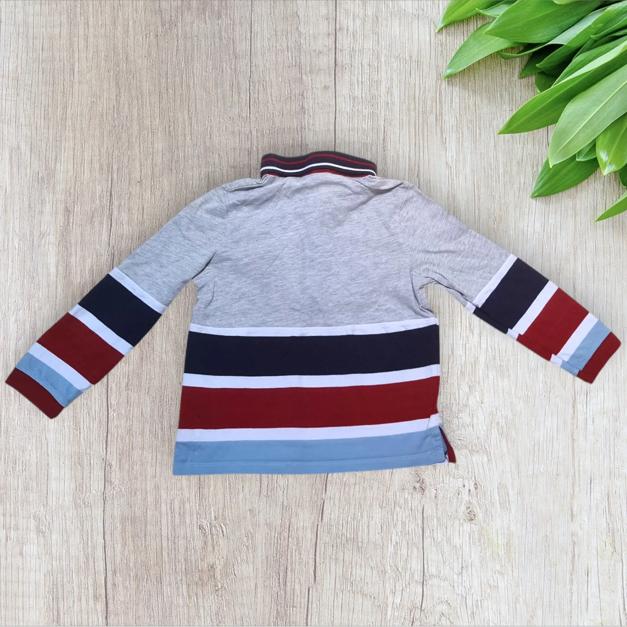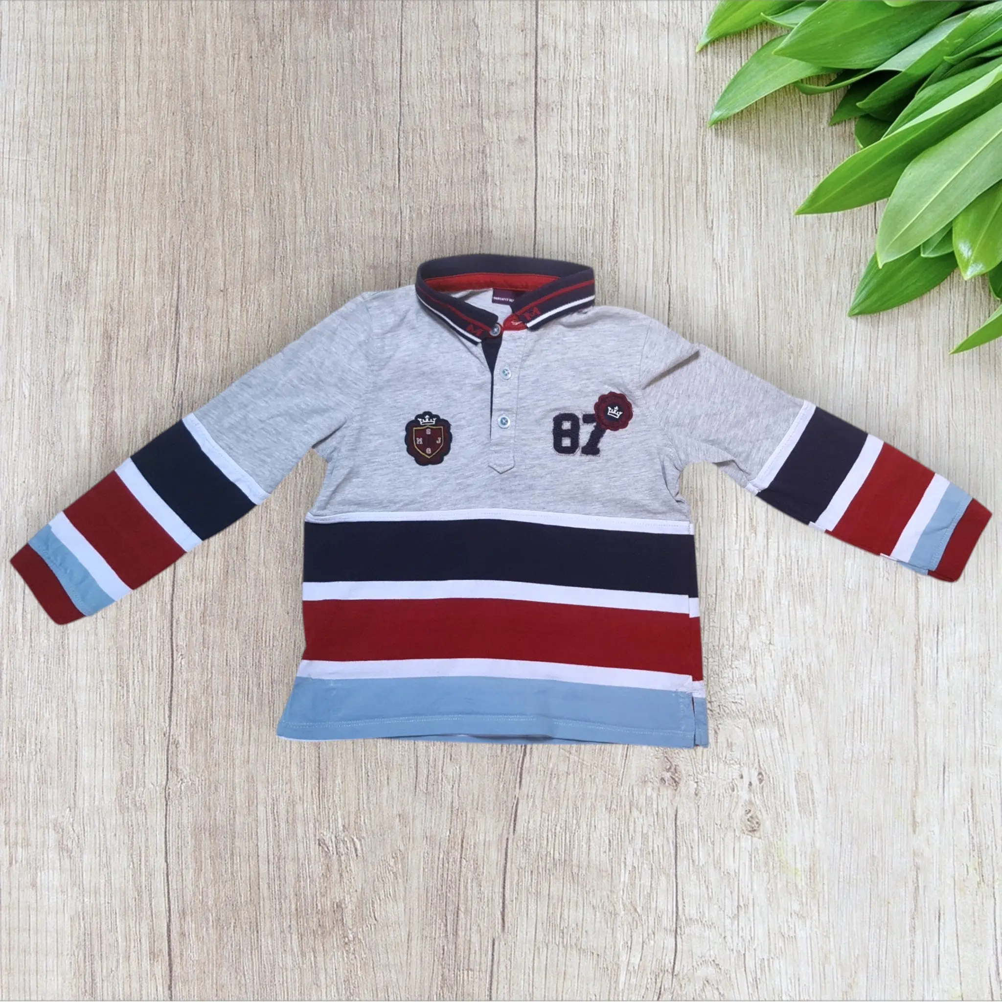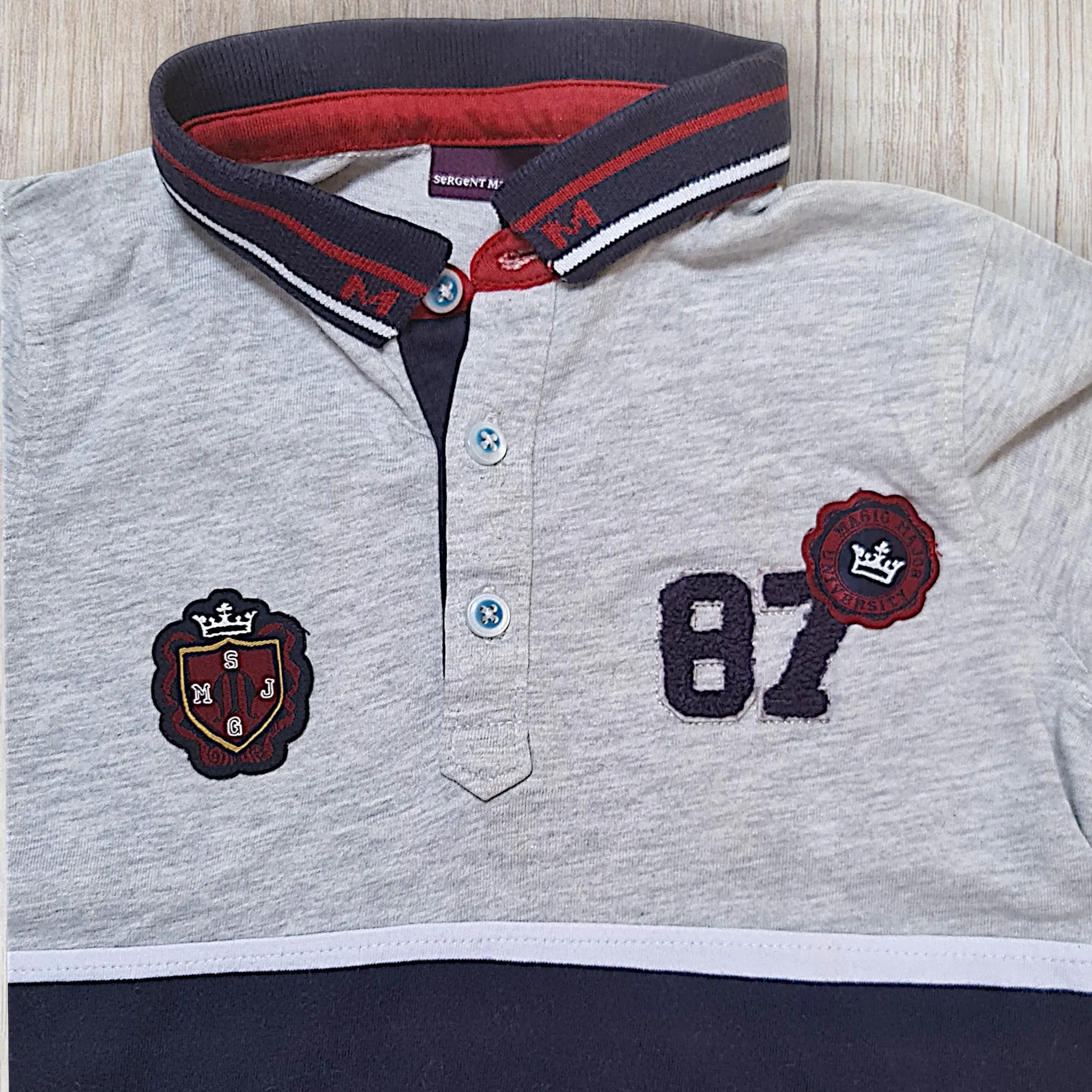 Polo garçon Sergent Major–5 ans–Manches longues–Gris à rayures et écussons