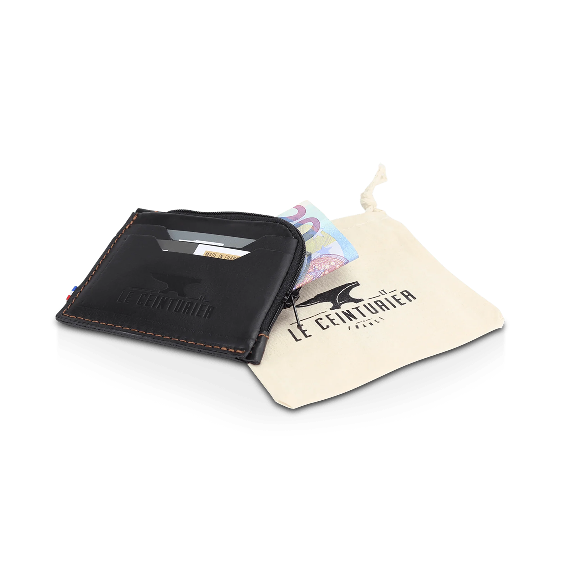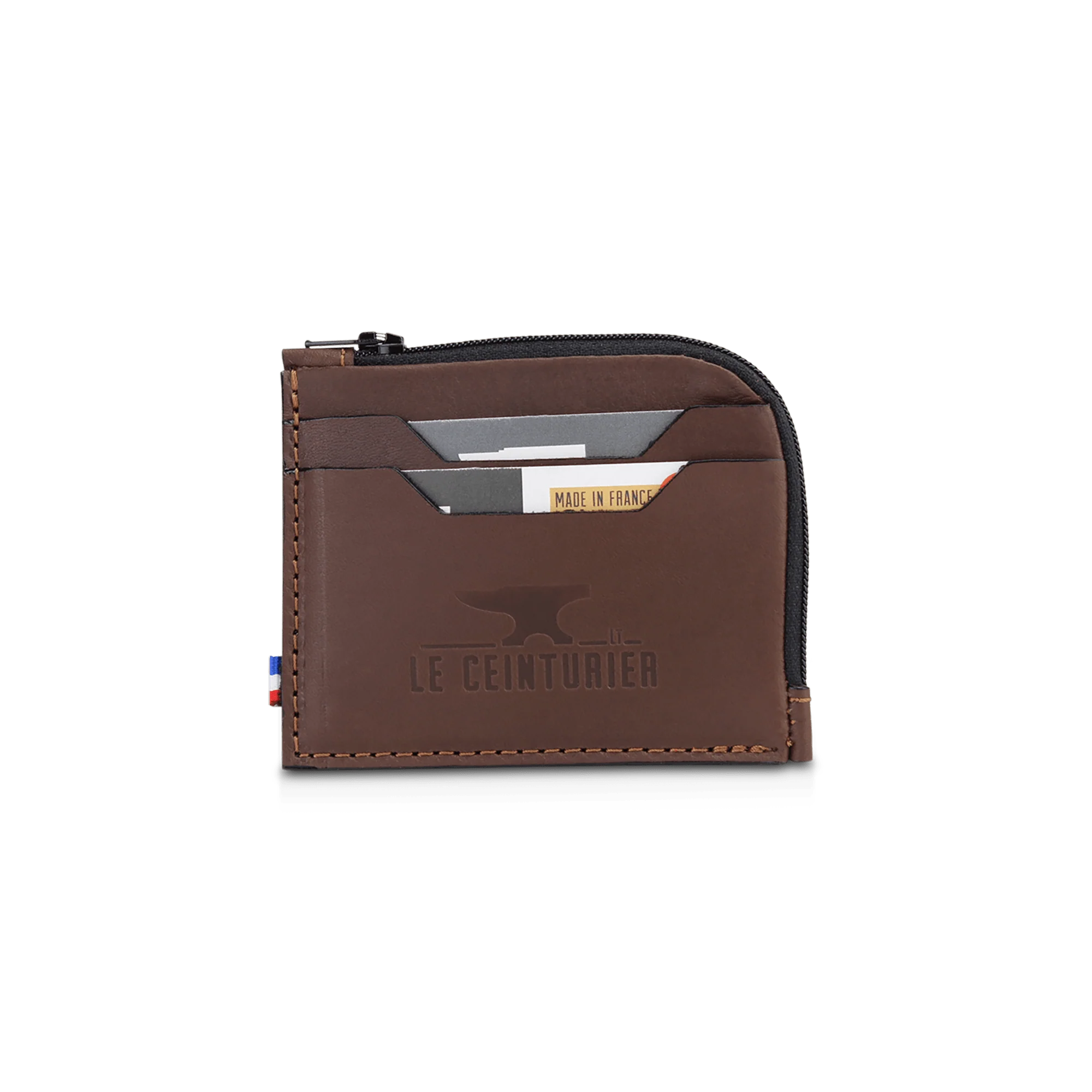 • Cuir origine France tanné en France • Tannage végétal sans sels de chrome • Cuir pleine fleur haut de gamme • 2 compartiments à cartes au format CB sur l’une des faces • 1 grand compartiment zippé sur la tranche pour monnaie, billets et cartes • Fabriqué en France dans l’atelier Le Ceinturier