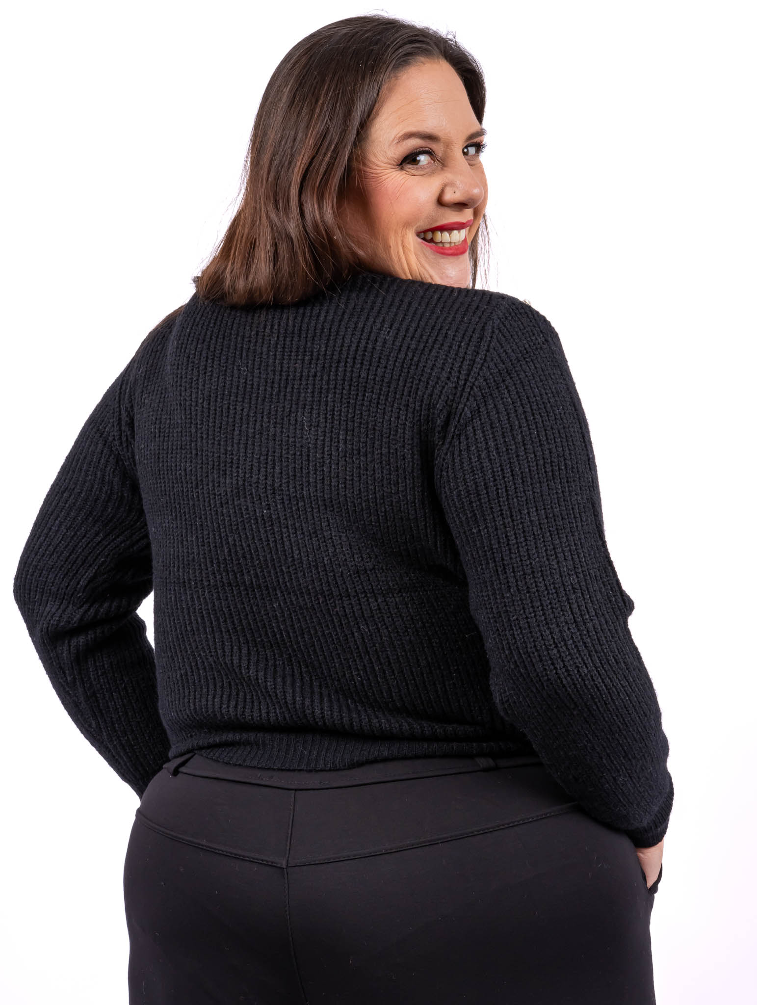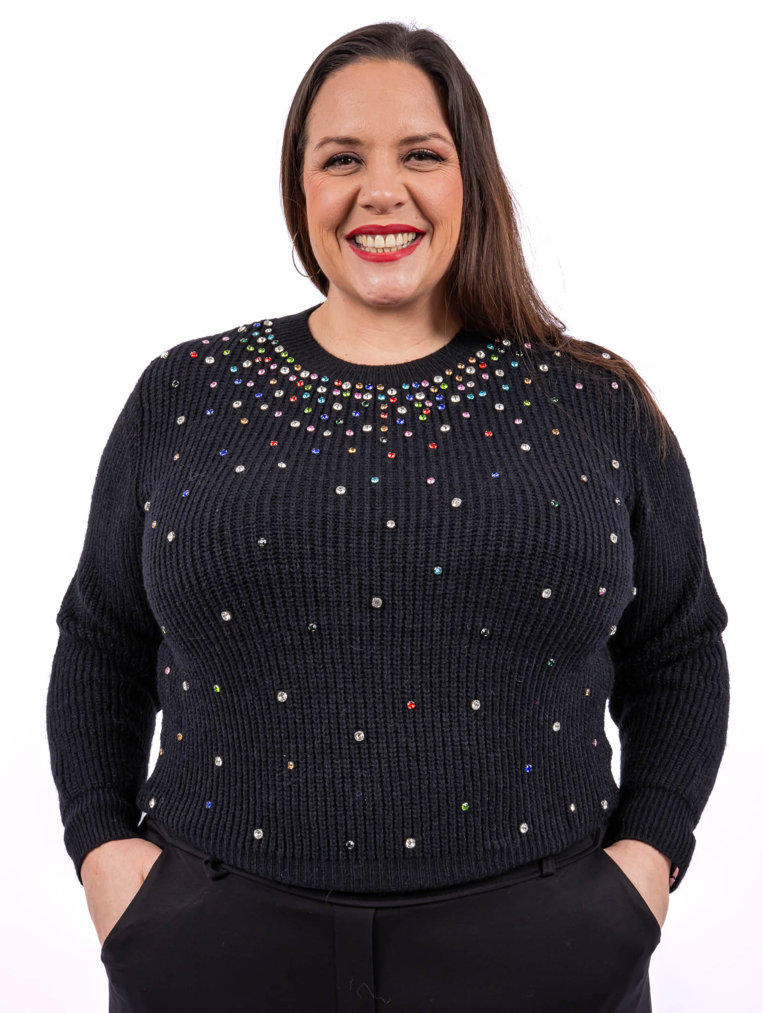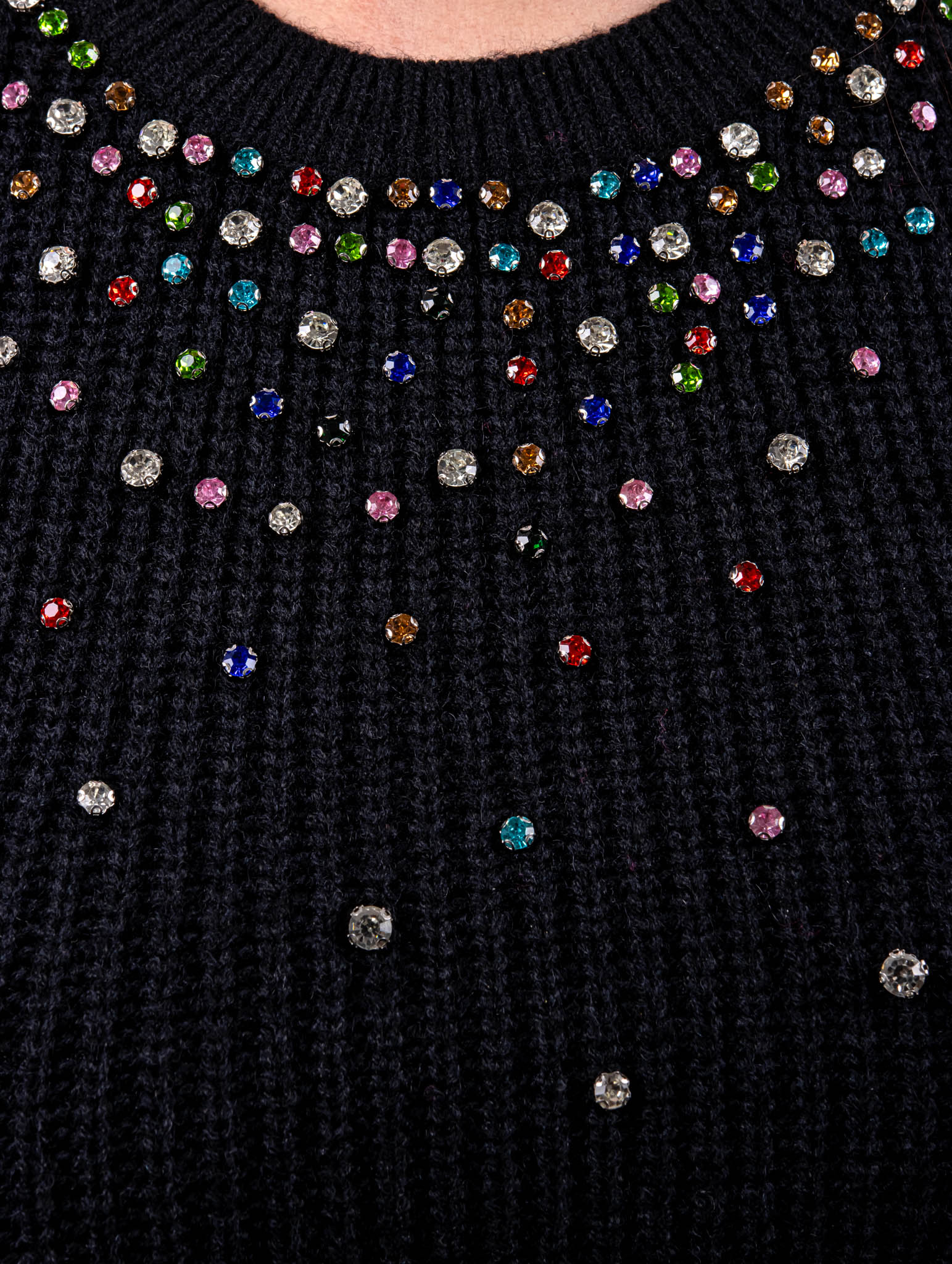 Pull à strass multicolores Maille côtelée stretch Convient jusqu’à une taille 52 Strass de toutes les couleurs