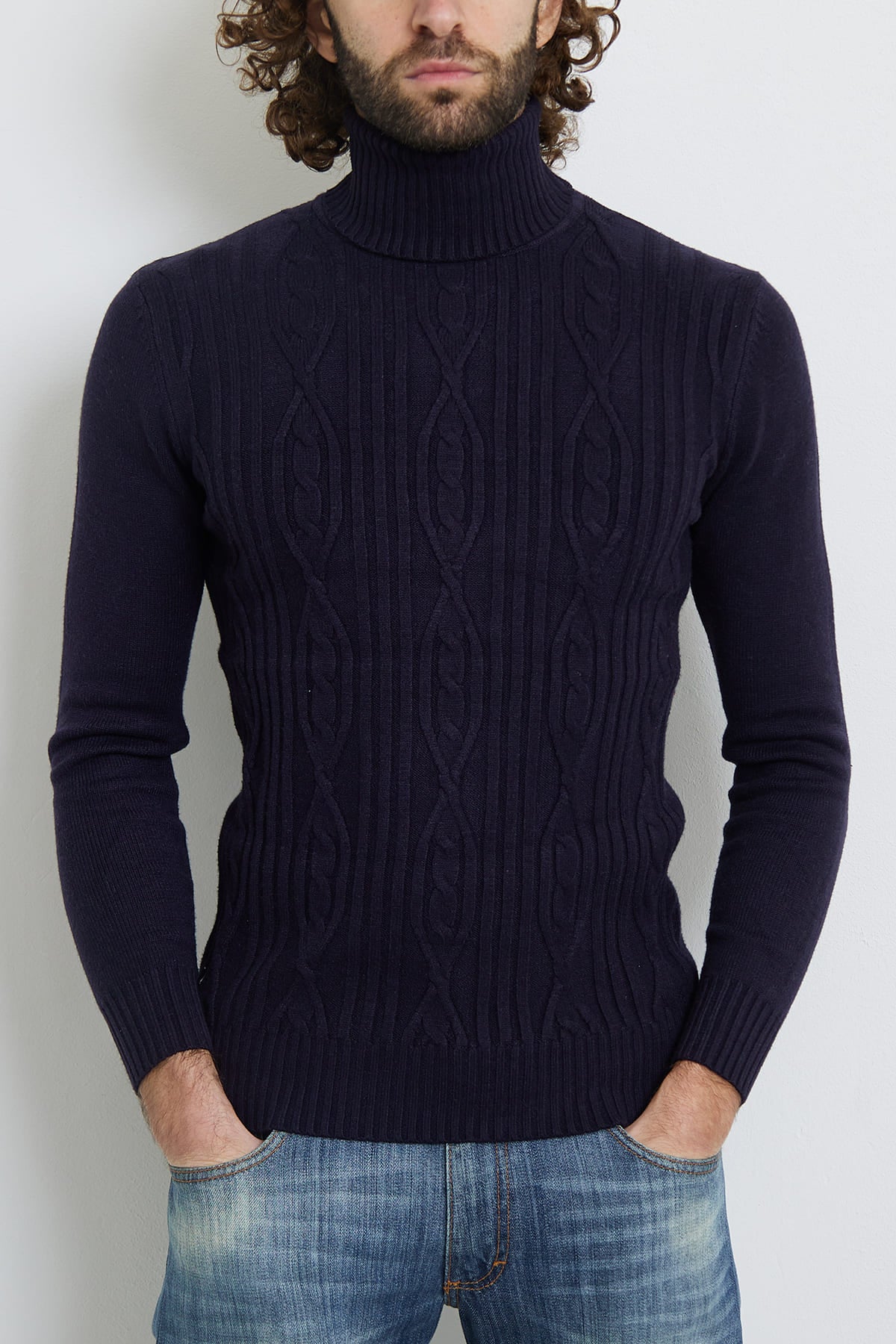 pull bleu marine homme avec col roulé CHL99156-2MARINE