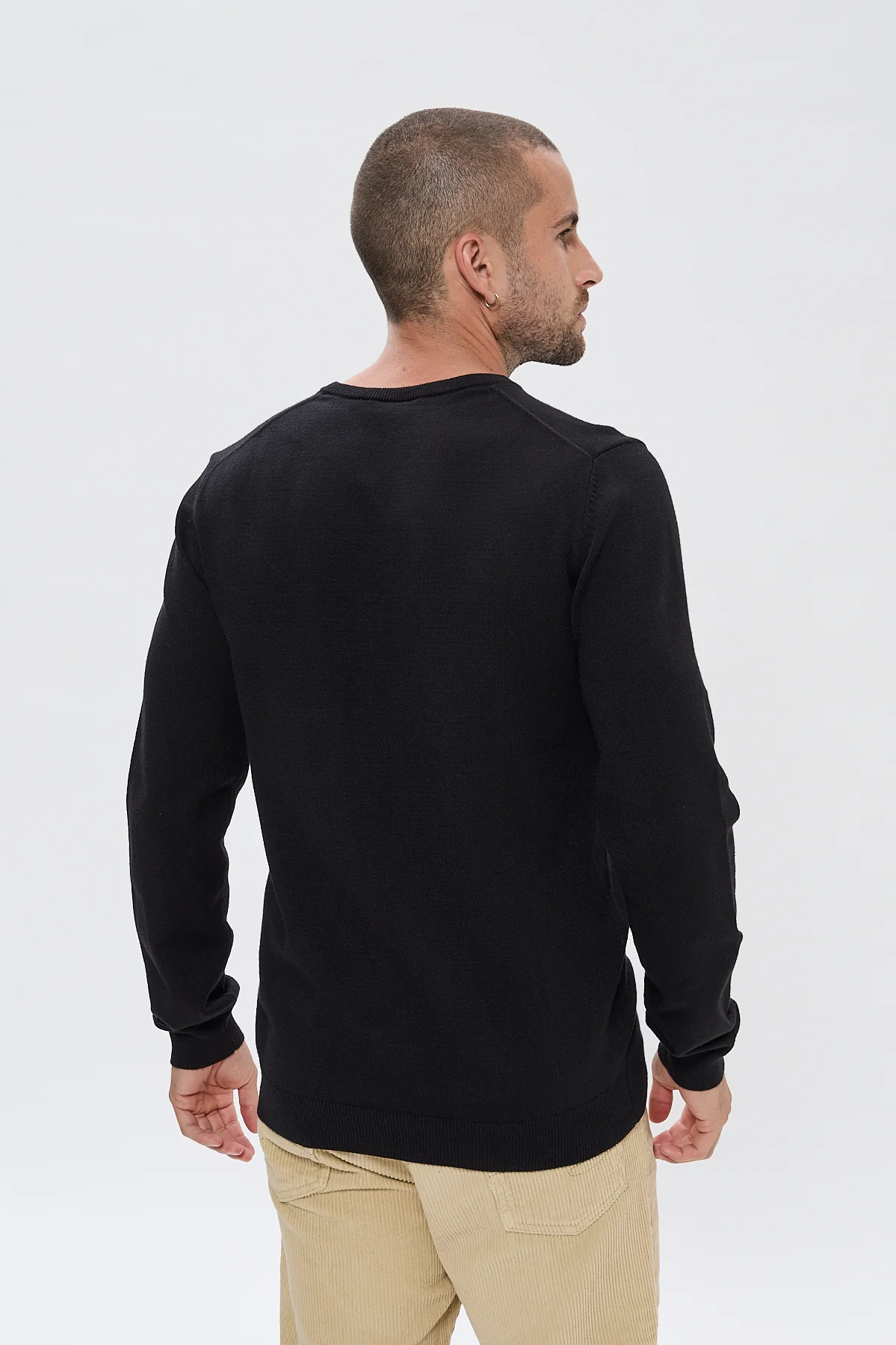 Pull basique confectionné dans une maille douce mêlant viscose, polyester et polyamide, il offre une texture fluide, agréable au toucher, et une bonne tenue au quotidien.