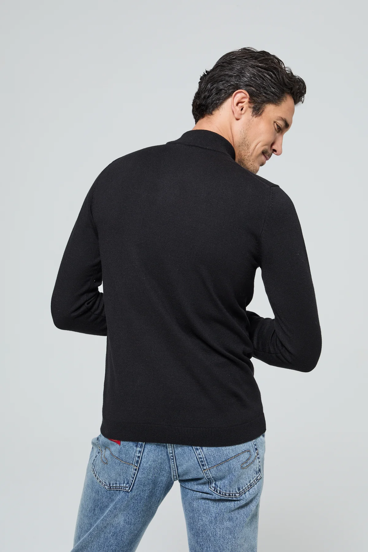 Avec sa coupe regular, ses manches longues et son col montant ajusté, il offre une silhouette structurée sans contrainte, idéale aussi bien en solo qu’en superposition sous une veste ou un manteau.