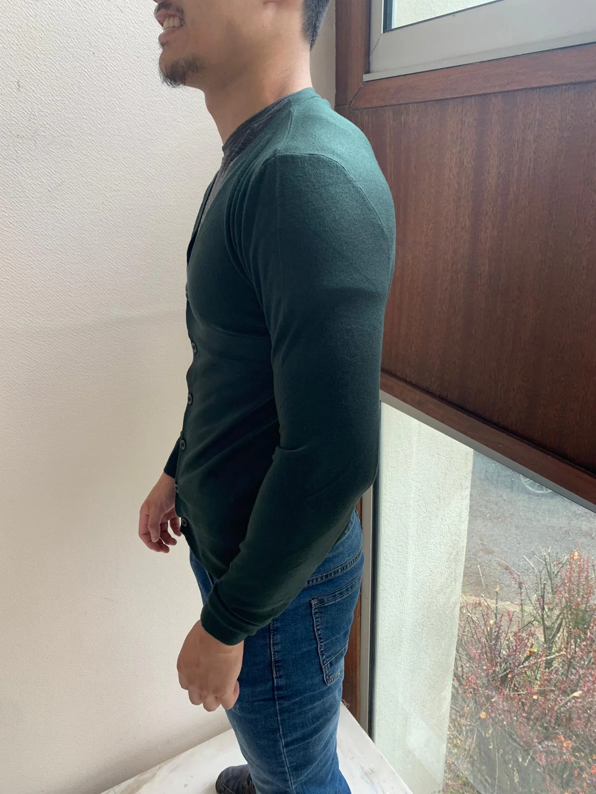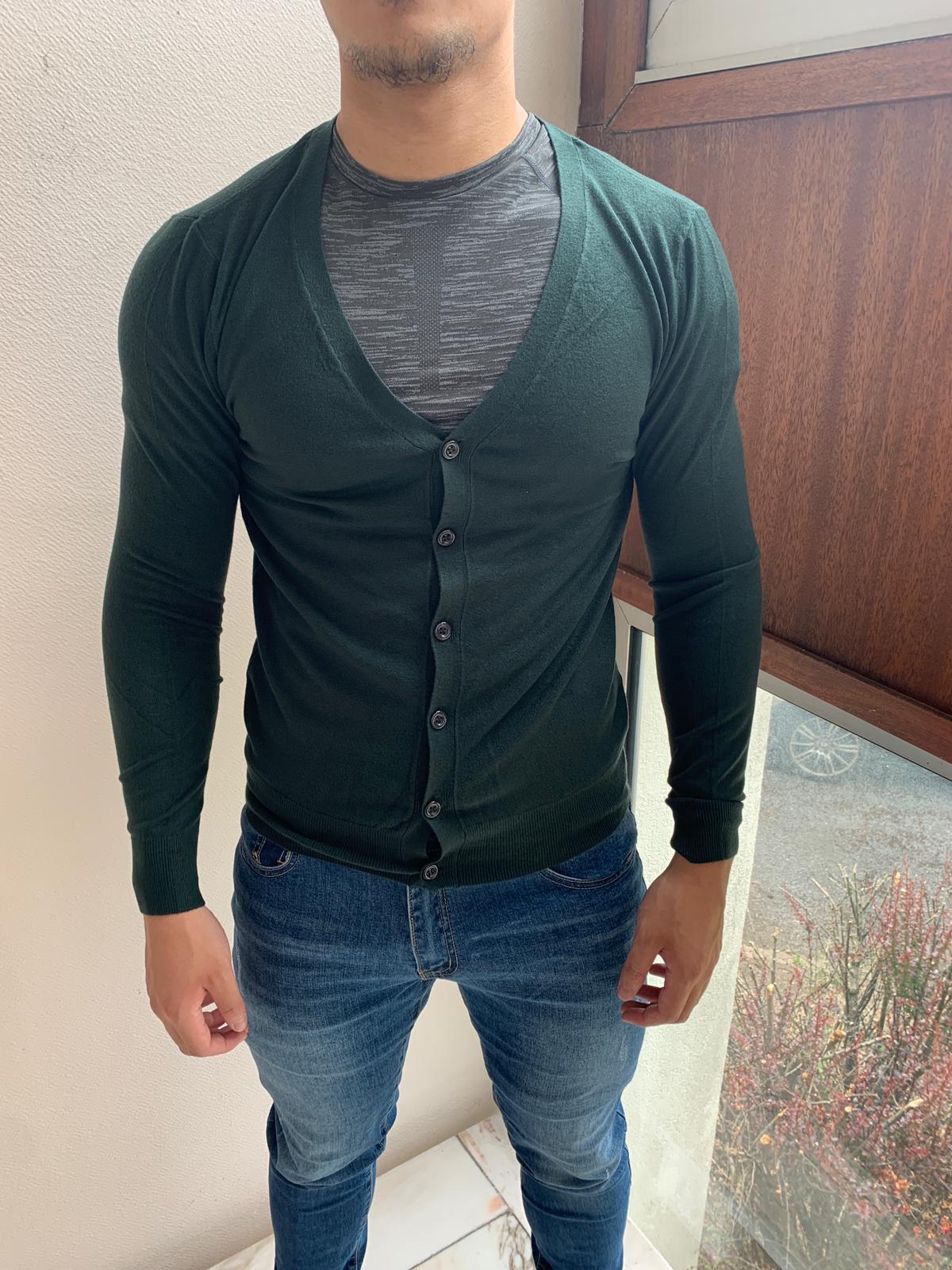 Pull Cardigan Mentex Modèle : Pull Cardigan vert Pull cardigan Pull fashion Etiquette certifiant l’authenticité Coupe et taille Le mannequin fait 1m85 et porte du M Ce produit taille slim
