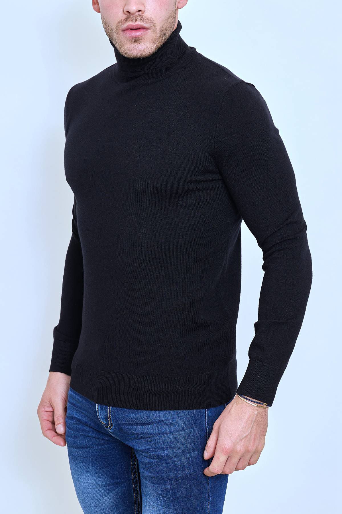 Pull col roulé classique noir fashion homme