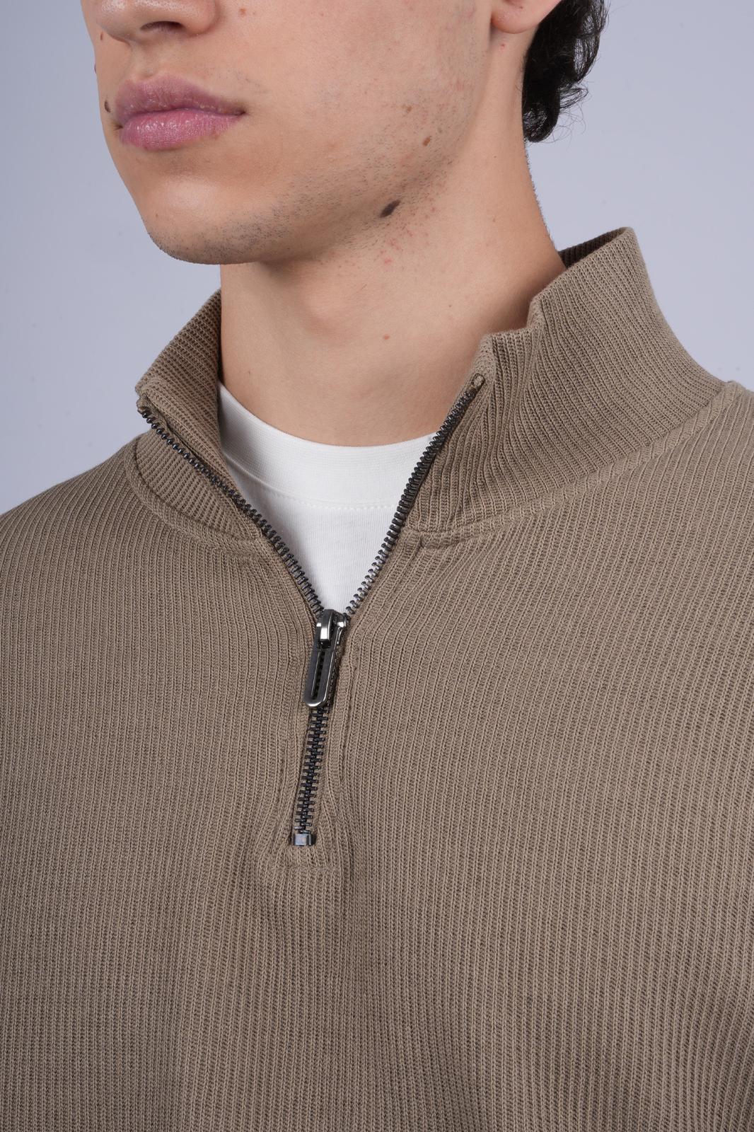 PULL Col Zipee KAKI CLAIR