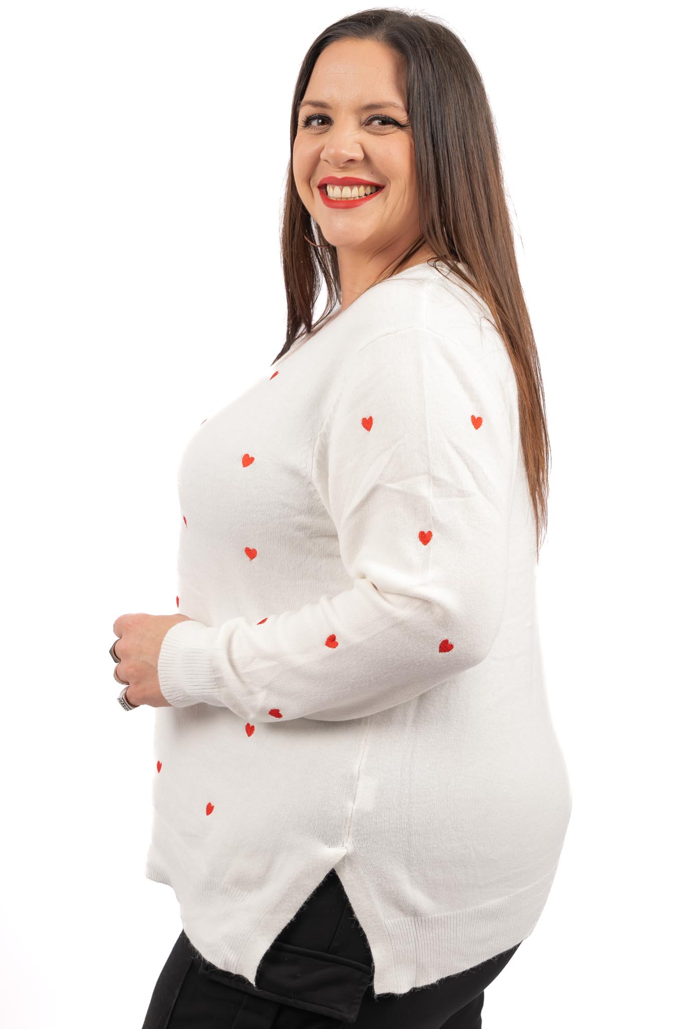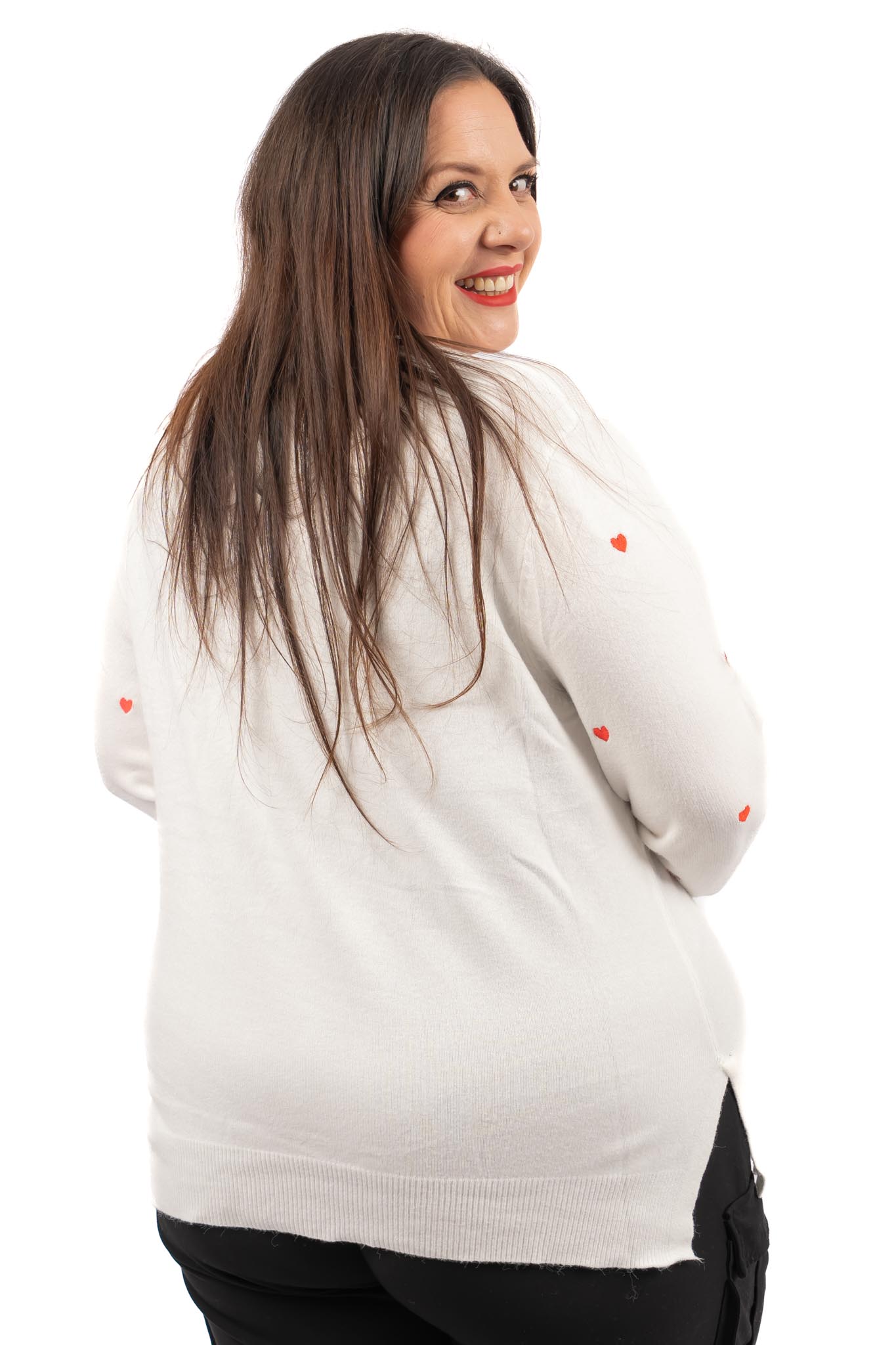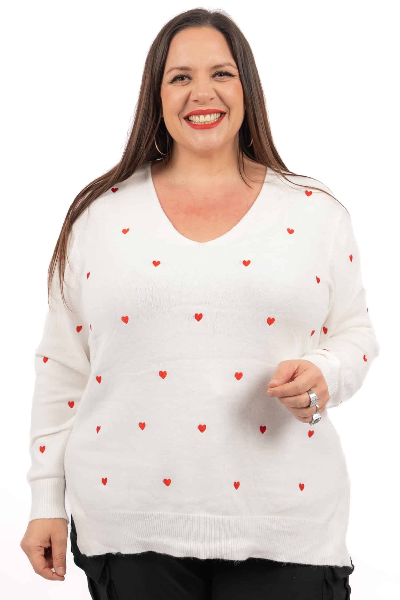 Pull maille blanc avec coeurs rouges femme