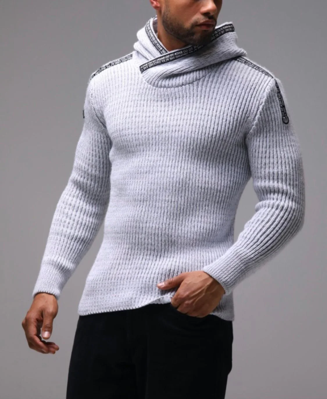 Pull stylé classique à col montant gris clair homme fashion