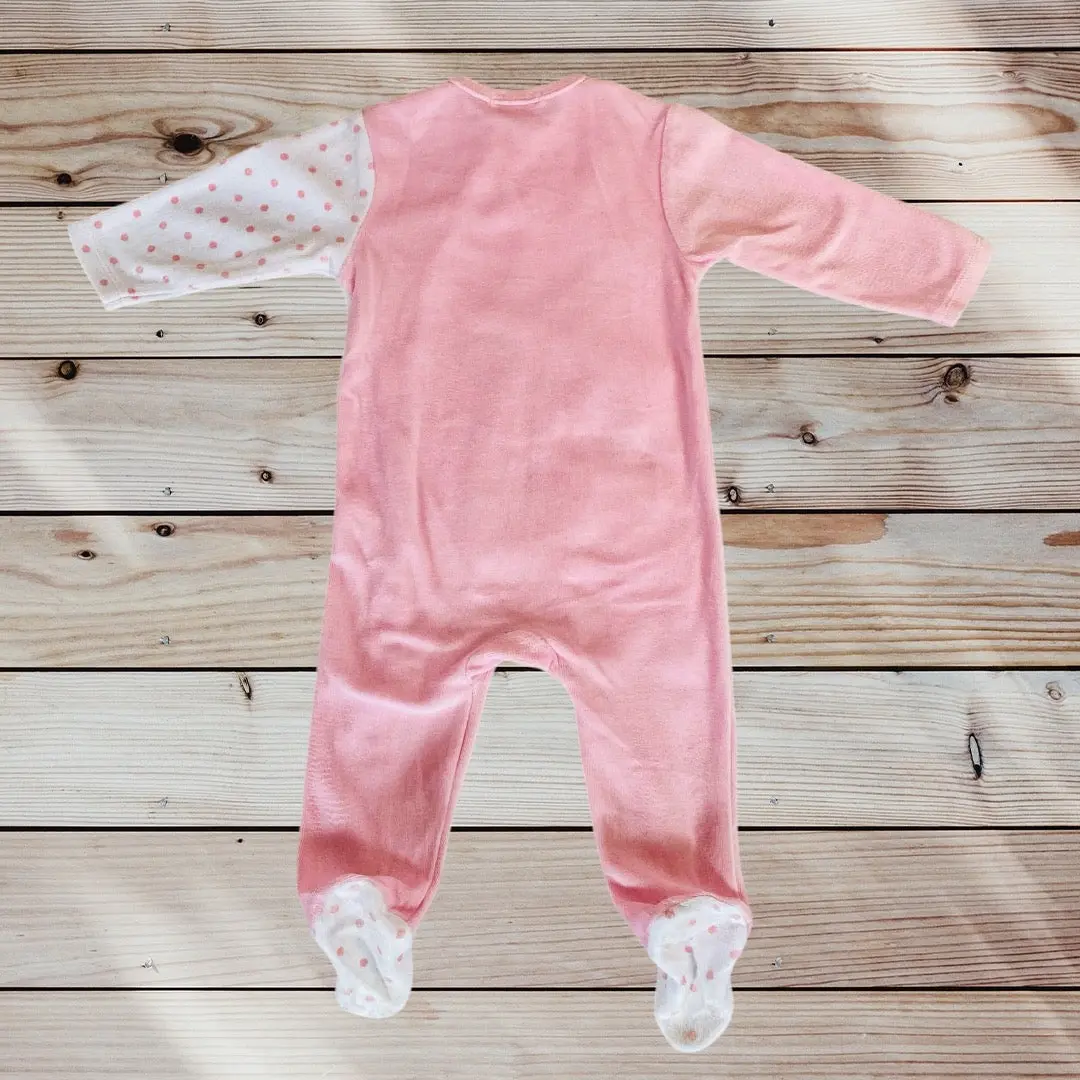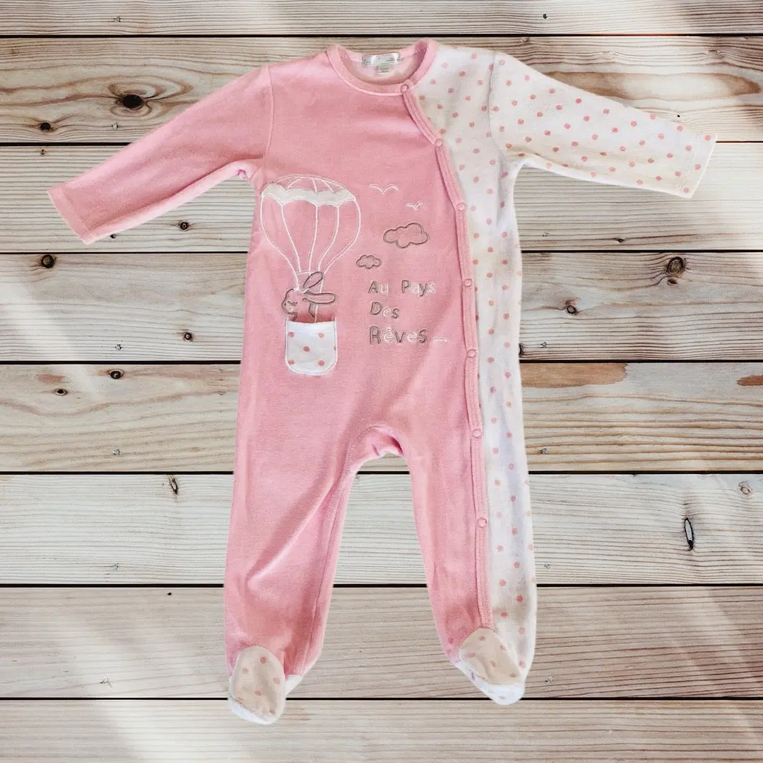 Pyjama Bébé Fille 12 Mois – 1 Pièce Rose et Blanc Pois avec Lapin en Montgolfière