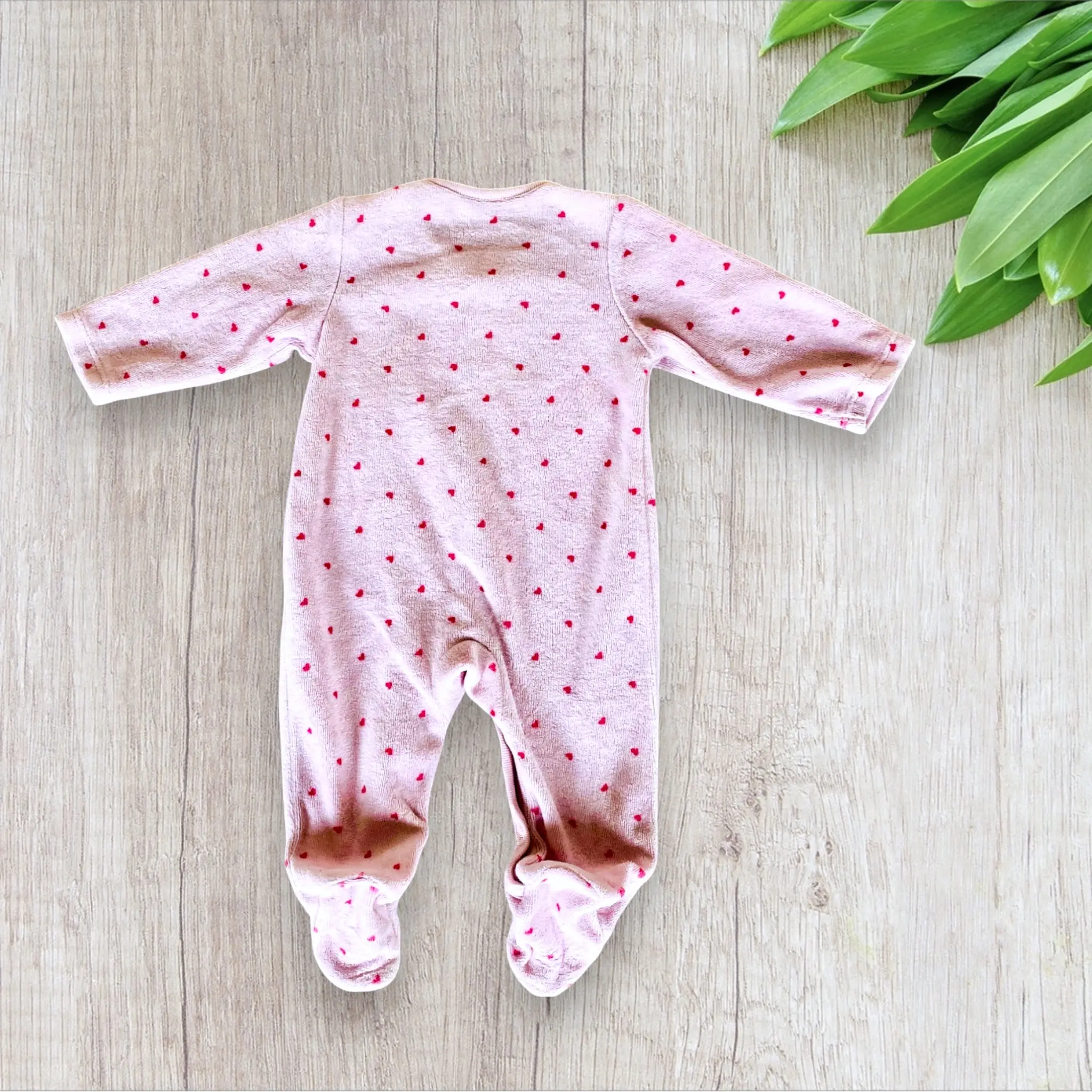 Pyjama Bébé Fille 56 cm – Rose Pale avec Coeurs Fuchsia et souris – In Extenso