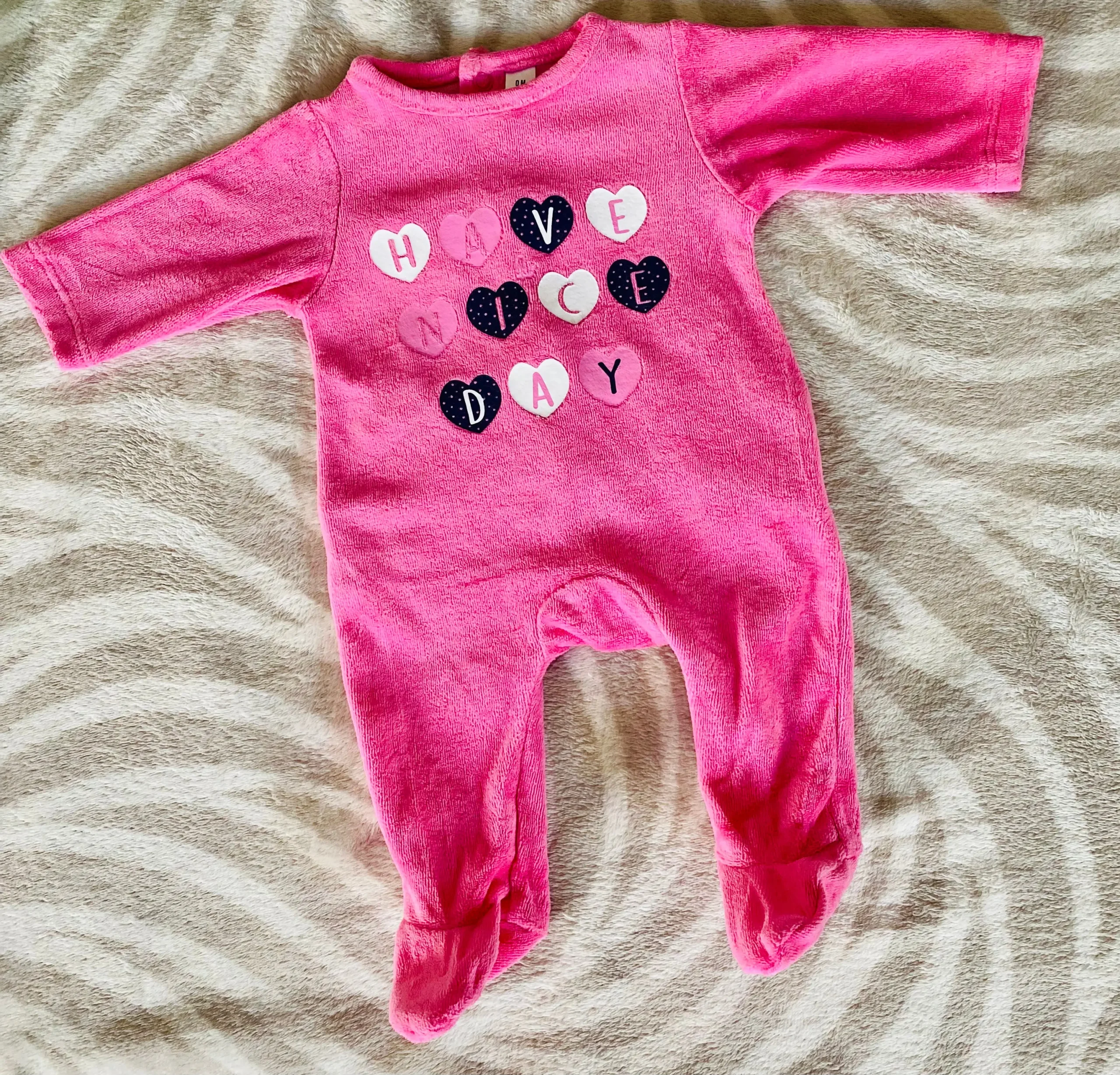 Pyjama Rose avec Motifs Cœur et Inscription « Have a Nice Good Day » – Taille 0 Mois – Tex