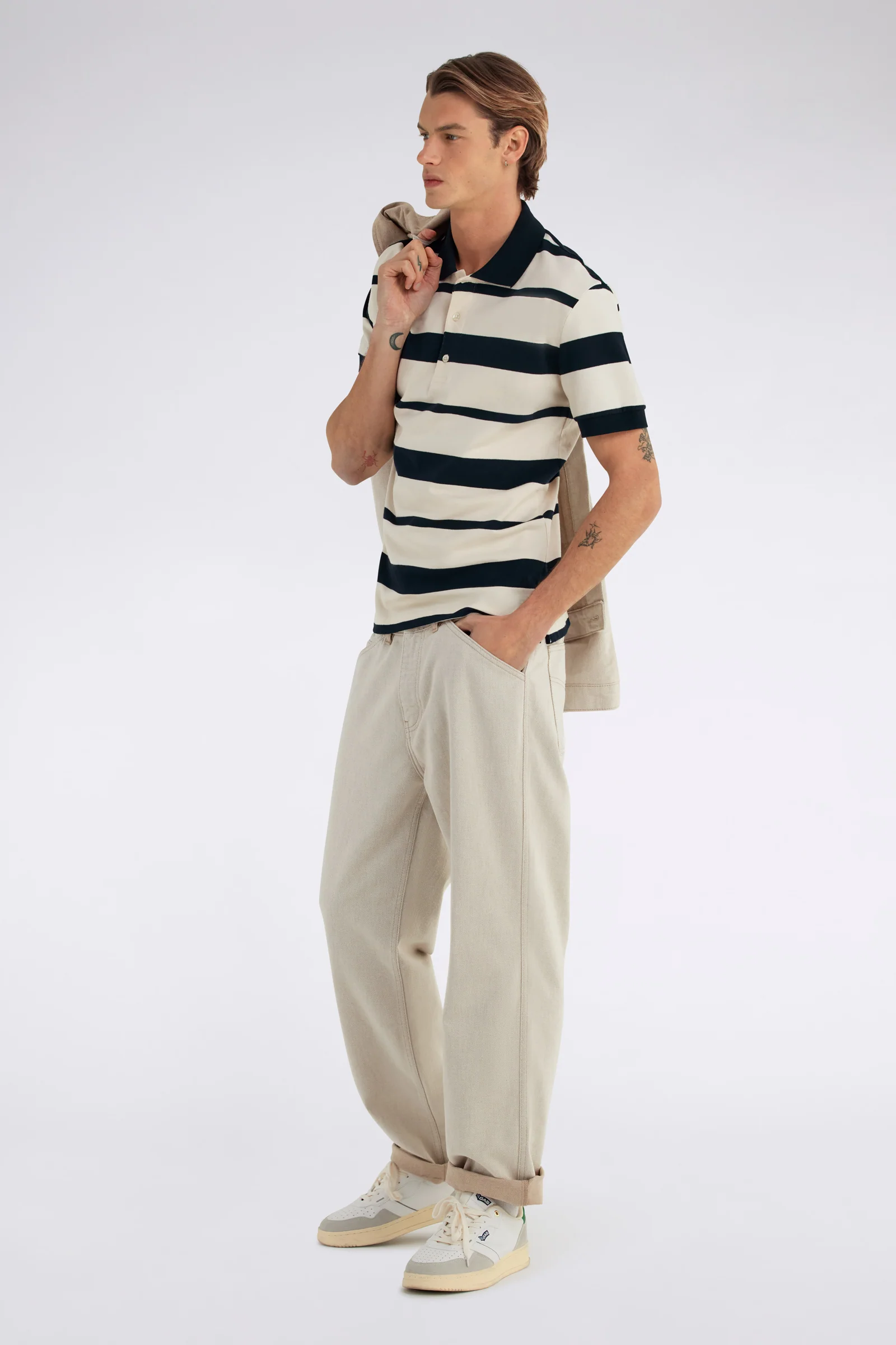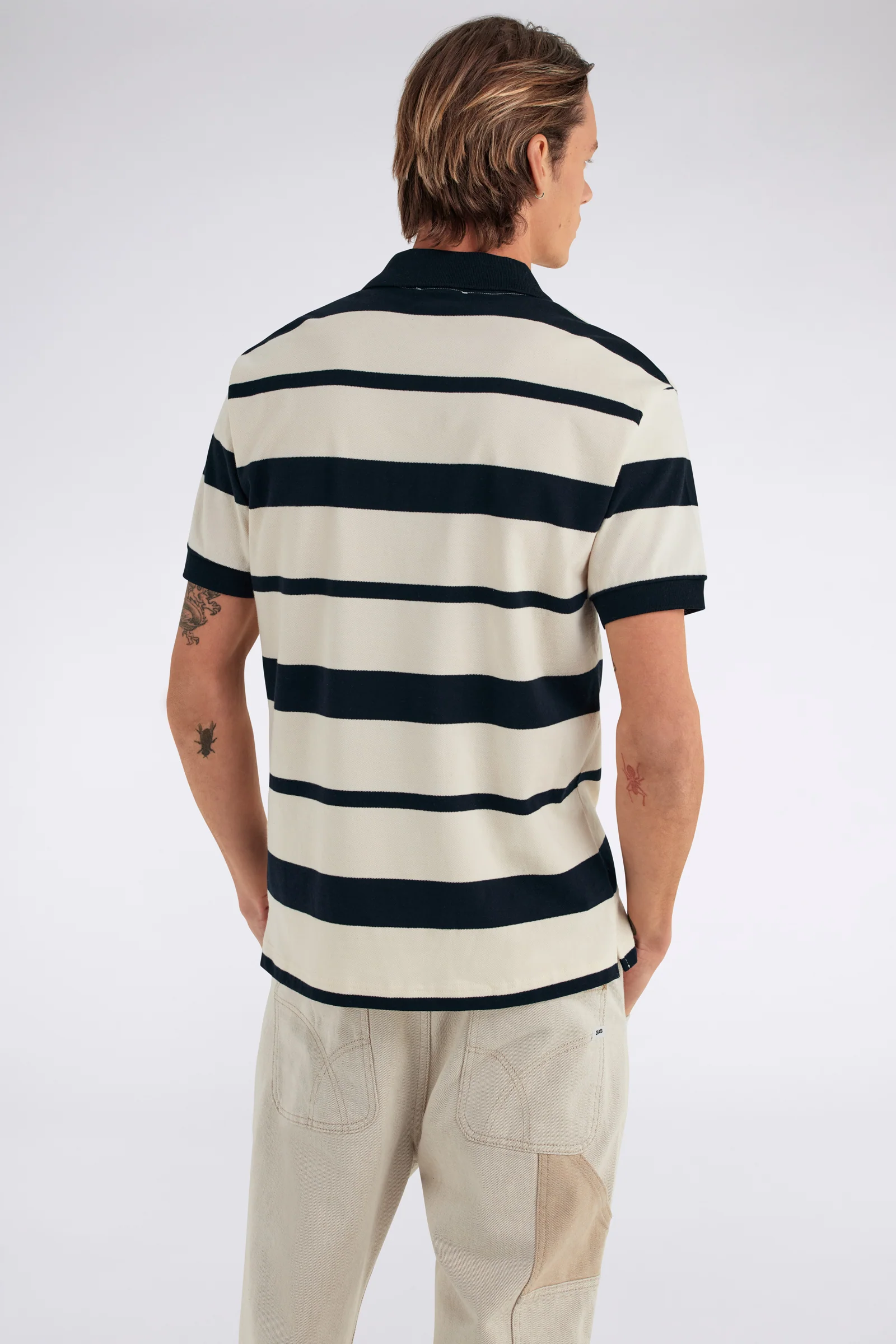 Polo uomo a manica corta, slim fit, in piquet di cotone stretch rigato. Un evergreen, reso unico dal patch logo gommato applicato sul fianco sinistro. La texture a righe e la vestibilità slim la rendono perfetta per un look dinamico e versatile, ideale per il tempo libero o per occasioni casual. Un must-have che unisce comfort, stile e fascino senza tempo.