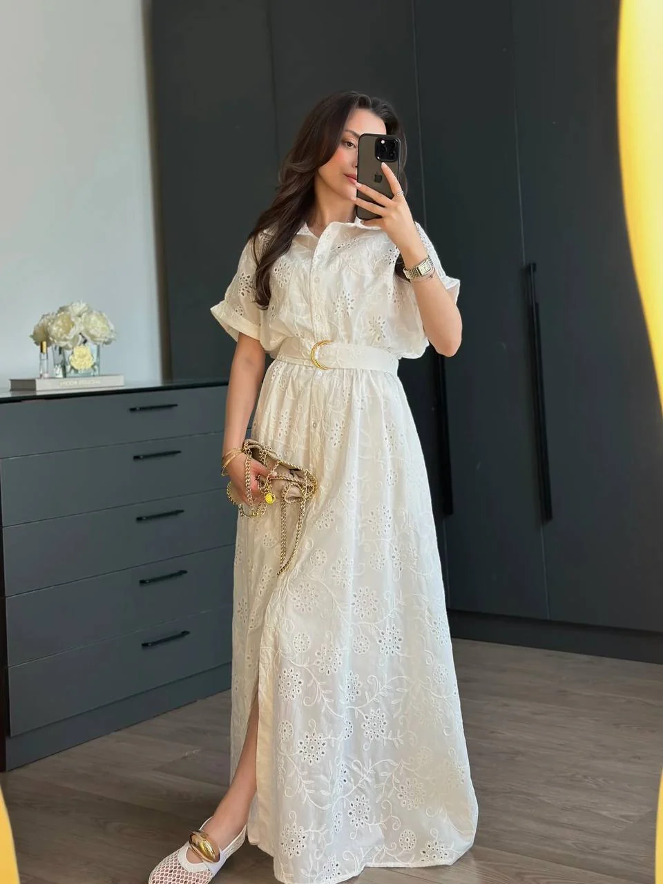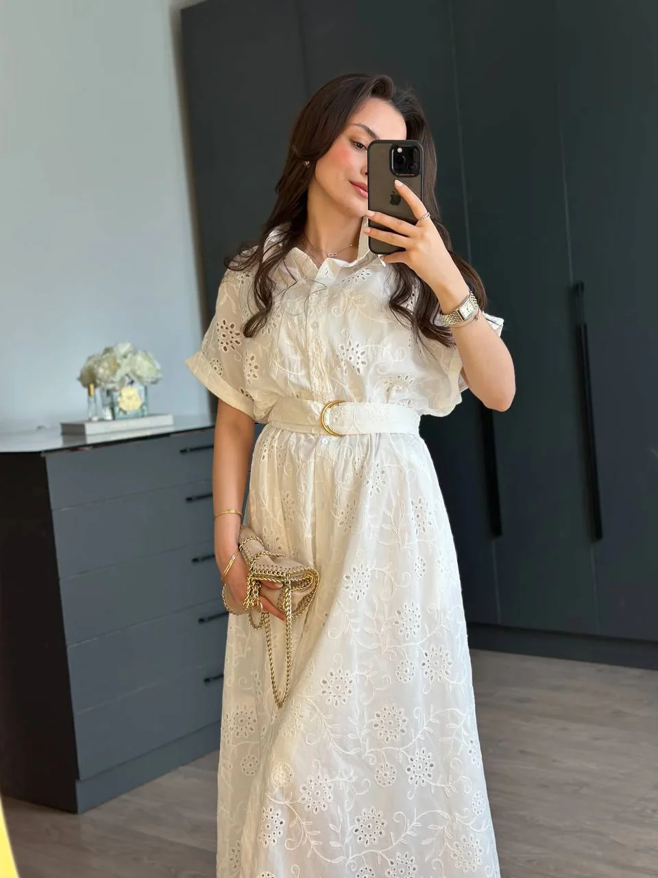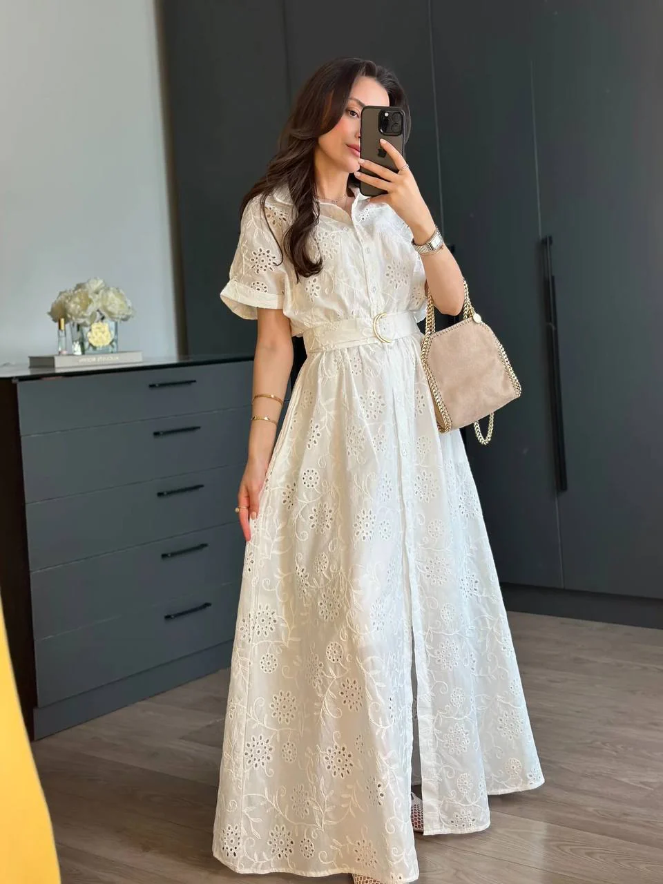 Robe Chemise Brodée “Blanche” – Ceinture à nouer
