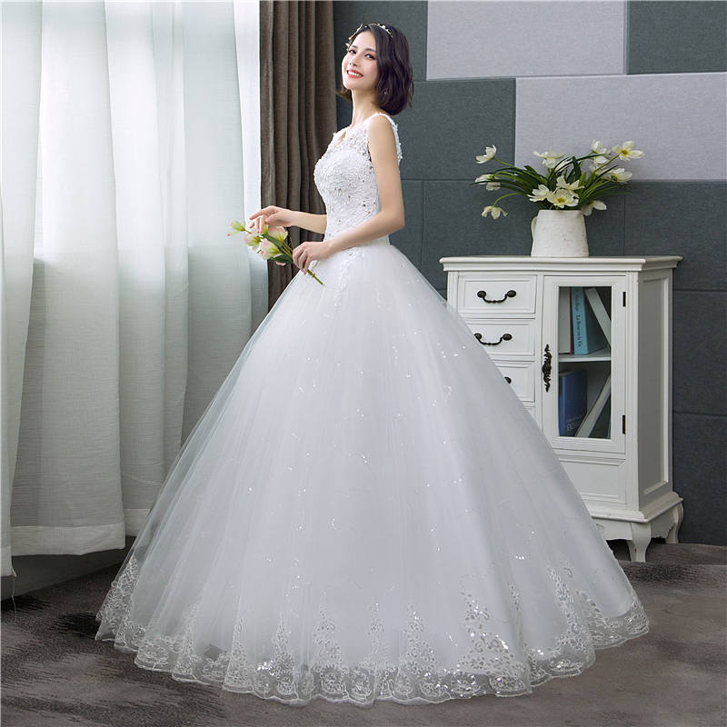 Le jour de vos noces, soyez la plus belle des mariées, vêtue de cette robe nuptiale traditionnelle blanche, et mettez en valeur votre silhouette.