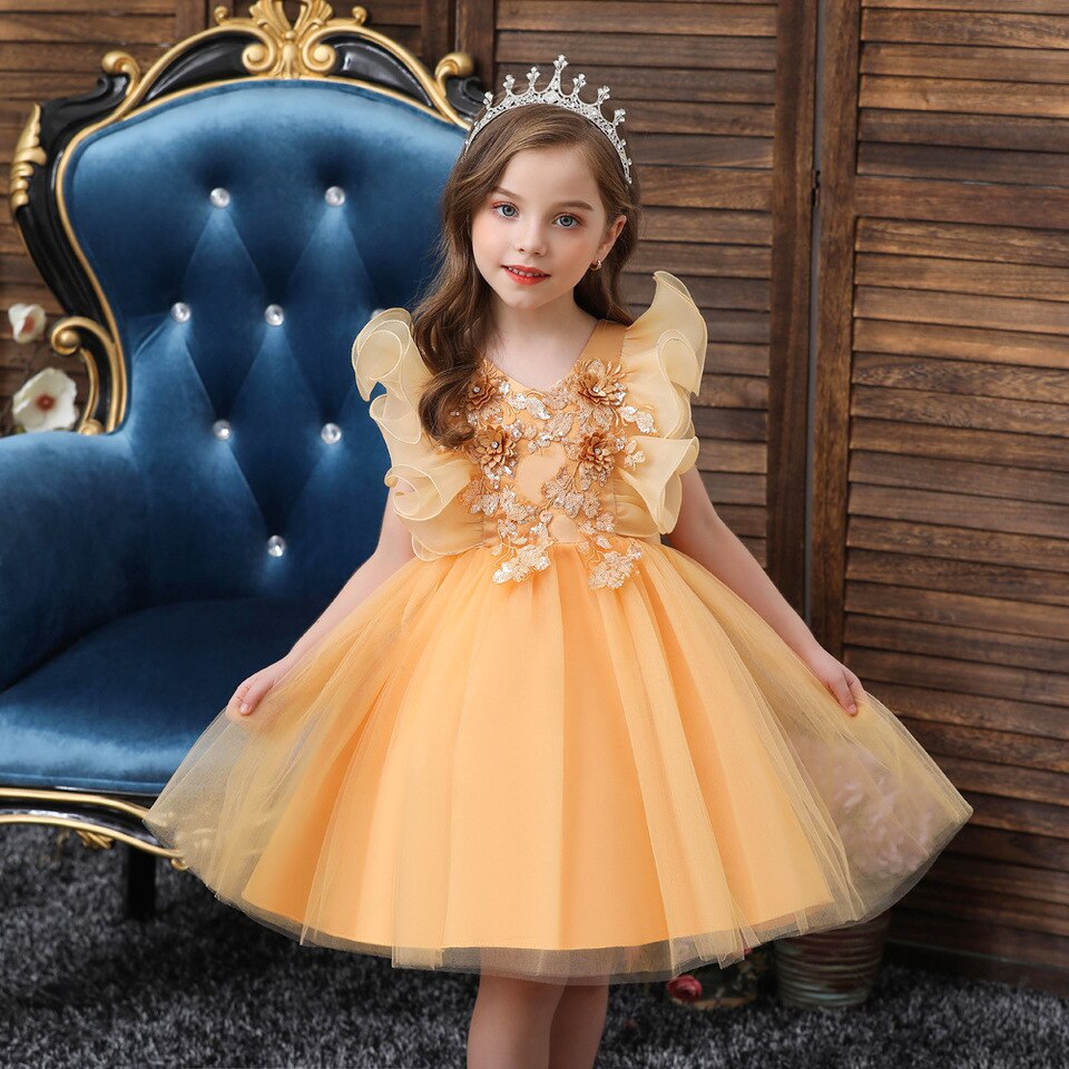 Aidez votre fille à briller en lui achetant cette superbe robe de princesse dorée pour fille. C’est une mignonne petite robe, parfaite pour un événement formel.