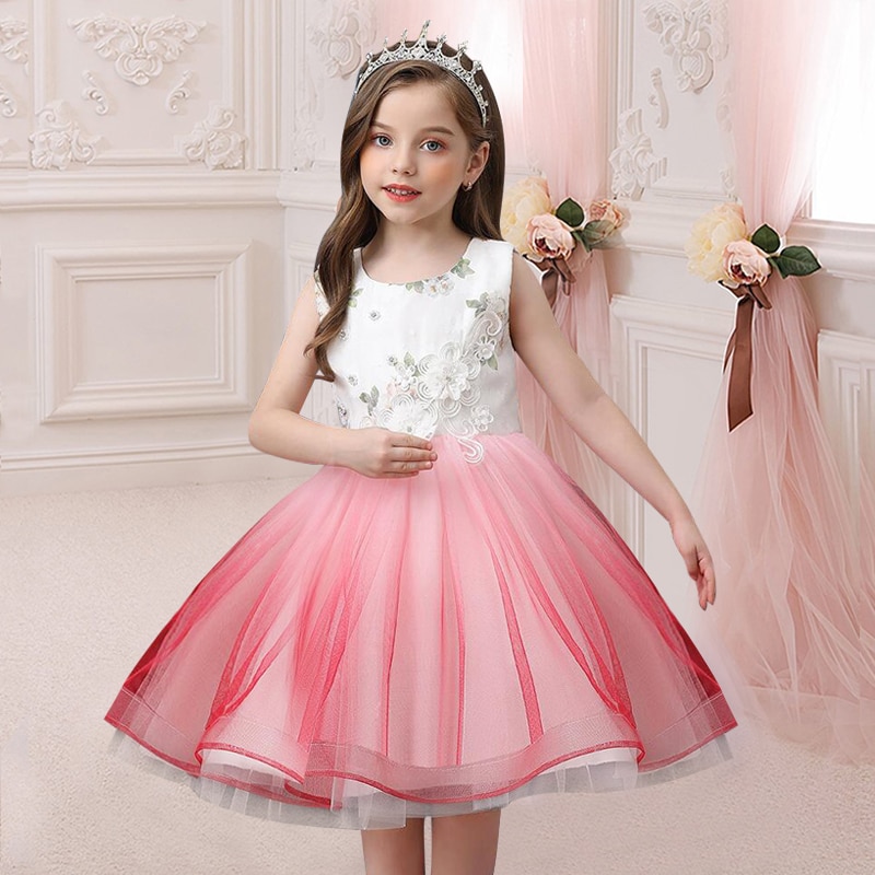 Cette robe de princesse pour fille rose et blanche est une robe au design classe, parfaite pour les occasions formelles.