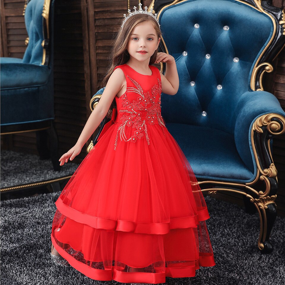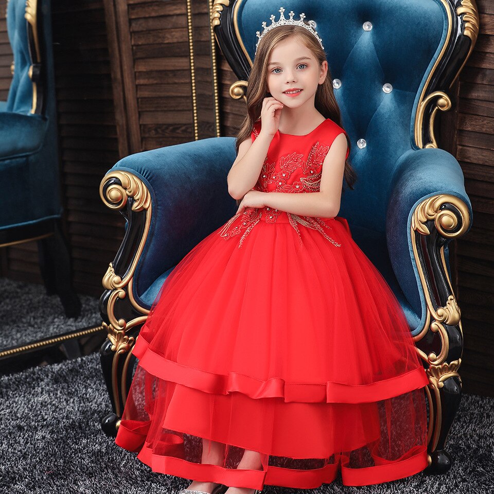 Offrez la robe de ses rêves à votre petite fille, cette robe de princesse rouge à perles est la robe idéale pour se sentir comme une vraie princesse.