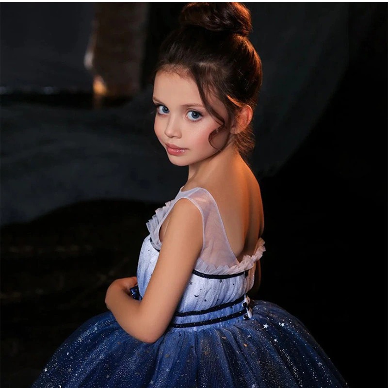 Vous voulez gâter votre petit ange ? Offrez-lui cette robe princesse à dentelle étoilée pour fille à design unique et élégant.