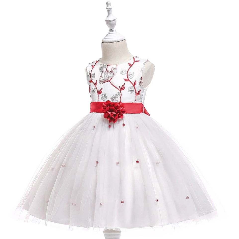 Offrez à votre fillette une robe de rêve pour son anniversaire avec cette robe princesse sans manches, brodée et en voile doublé.